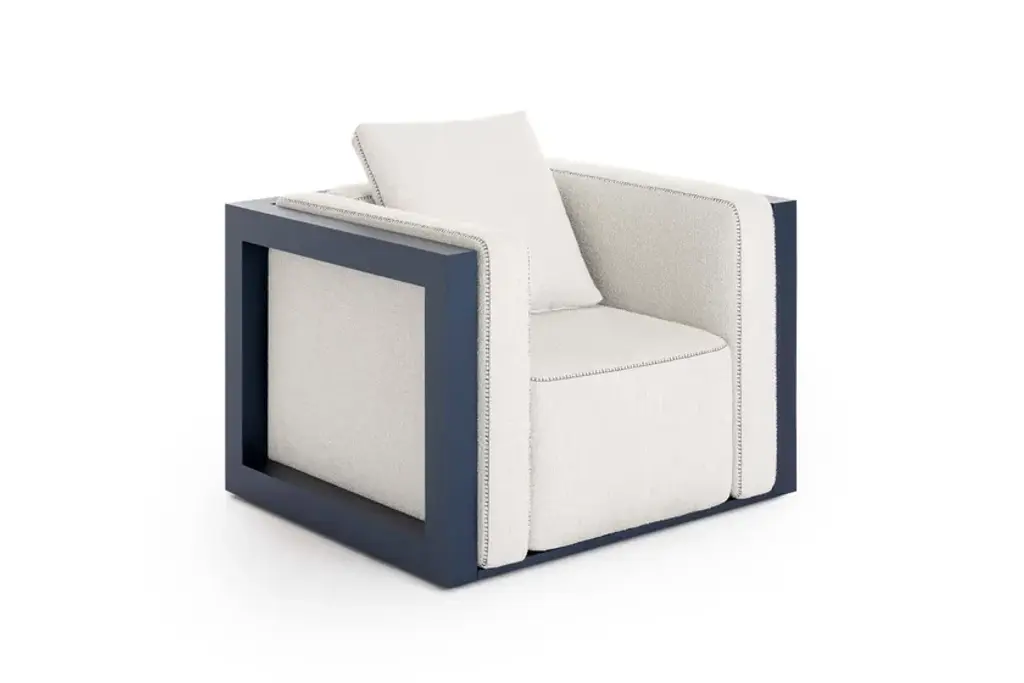 The Islablanca lounge chair shares the simple and sober style of the rest of the exclusive furniture in the Islablanca collection. In combination with the other pieces, it is ideal for configuring outdoor enjoyment spaces. This designer lounge chair has a light aluminium structure and its removable upholstery houses a comfortable filling of breathable polyurethane foam, suitable for outdoor use thanks to its fast drying time.MaterialsPowder-coated aluminiumSeat and backrest in polyurethane foam rubber and polyester fiber with water-repellent fabricPolyester fiber cushion/pillow with water-repellent fabricRemovable technical upholstery for outdoor useIslablanca is a collection of outdoor furniture with a functional and elegant design created by José A. Gandía-Blasco Canales. The refined lines of this designer piece of furniture, clean and free of superfluous ornament, are inspired by the cubic rotundity, volume play, and the sobriety of traditional Ibizan constructions. ISLABLANCA is a tribute from its designer to the Mediterranean lifestyle and the connection with the nature of Ibiza, an island that he visited almost fifty years ago and for which he felt a fascination that endures despite the passing of the years.