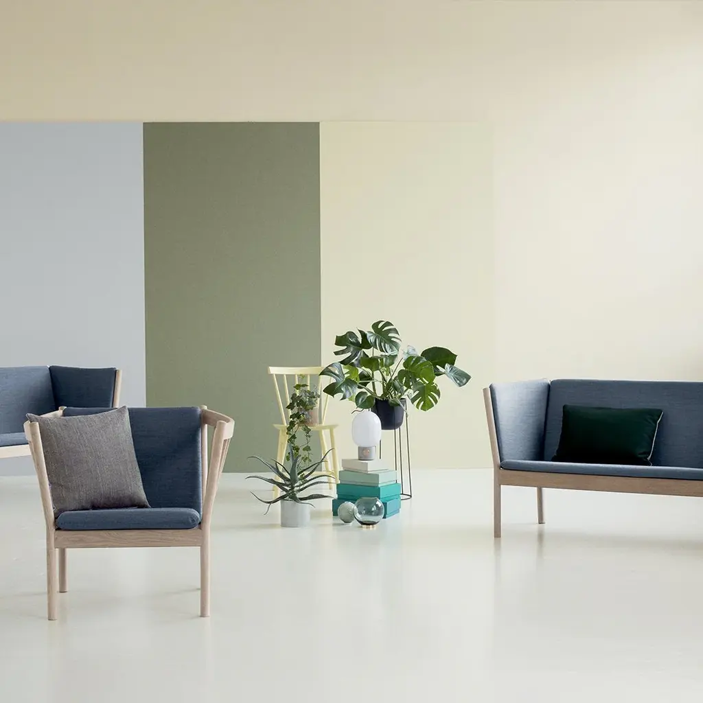 The classic design by Erik Ole Jorgensen is a series of simple but beautifully designed sofas and armchairs with a matt lacquered solid oak frame and a cushion made of strong New Zealand wool. A Danish design from 1978 whose wonderfully clean lines give the furniture a timeless look