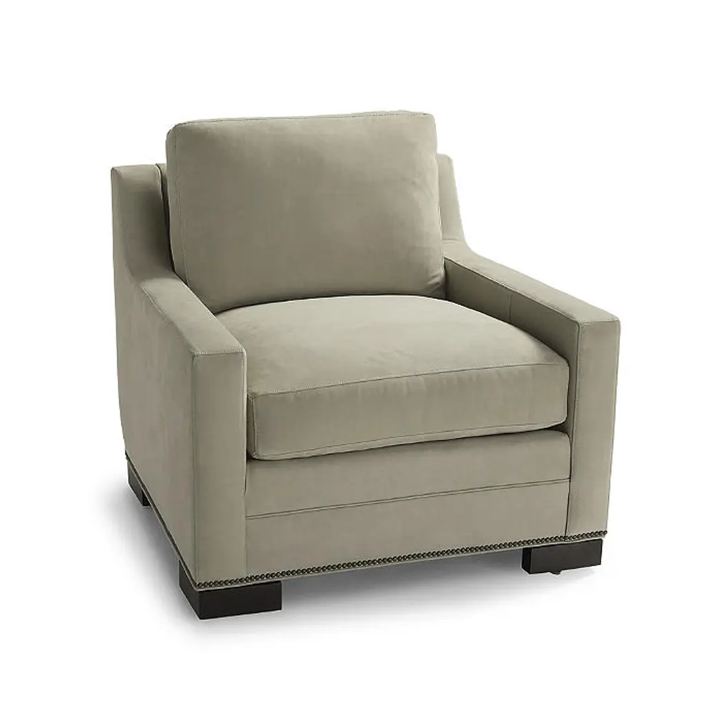 Introduce refined yet casual seating to any space with squared arms, self-welting and a variety of configurations. Our Jackson Seating Collection is handcrafted in the USA with maple legs and a hardwood frame, fully upholstered with your choice of over 150 premium fabrics. Premium Series Upholstery Collection Engineered hardwood frame Maple wood legs Featherblend seat and back core Eight-way hand-tied spring system Fully upholstered Choose from more than 150 fabrics in the Premium Upholstery Collection Velvet naturally ages over time, resulting in light marks or bruising that add to its character and sheen Performance fabric resists stains and repels water and oils, ensuring easy cleaning Leather is a natural material, retaining character marks and subtle shade variations; no two pieces are exactly alike Performance leather is treated to reduce scratching, fading, staining and color variation On leather option, velvet decking and cushion underside allow air to flow from the cushion through the decking Loose seat and back cushions with a French seam Natural Brass nailhead trim Plastic nonmarring floor glides Includes levelers To prevent injuries or damage to item, recommended team lift (two or more people) for furniture placement Proudly handcrafted in the USA with imported materials, our frames and upholstery are made for life A Frontgate exclusive. At Frontgate, our primary focus is quality. We guarantee that every product we sell will stand up to the supreme test – our customers' satisfaction. To learn more about our policies, visit our Shipping & Processing, Returns & Exchanges and Warranty & Price Guarantee pages. Introduce refined yet casual seating to any space with squared arms, self-welting and a variety of configurations. Our Jackson Seating Collection is handcrafted in the USA with maple legs and a hardwood frame, fully upholstered with your choice of over 150 premium fabrics. Premium Series Upholstery Collection Engineered hardwood frame Maple wood legs Featherblend seat and back core Eight-way hand-tied spring system Fully upholstered Choose from more than 150 fabrics in the Premium Upholstery Collection Velvet naturally ages over time, resulting in light marks or bruising that add to its character and sheen Performance fabric resists stains and repels water and oils, ensuring easy cleaning Leather is a natural material, retaining character marks and subtle shade variations; no two pieces are exactly alike Performance leather is treated to reduce scratching, fading, staining and color variation On leather option, velvet decking and cushion underside allow air to flow from the cushion through the decking Loose seat and back cushions with a French seam Natural Brass nailhead trim Plastic nonmarring floor glides Includes levelers To prevent injuries or damage to item, recommended team lift (two or more people) for furniture placement Proudly handcrafted in the USA with imported materials, our frames and upholstery are made for life A Frontgate exclusive. At Frontgate, our primary focus is quality. We guarantee that every product we sell will stand up to the supreme test – our customers' satisfaction. To learn more about our policies, visit our Shipping & Processing, Returns & Exchanges and Warranty & Price Guarantee pages.