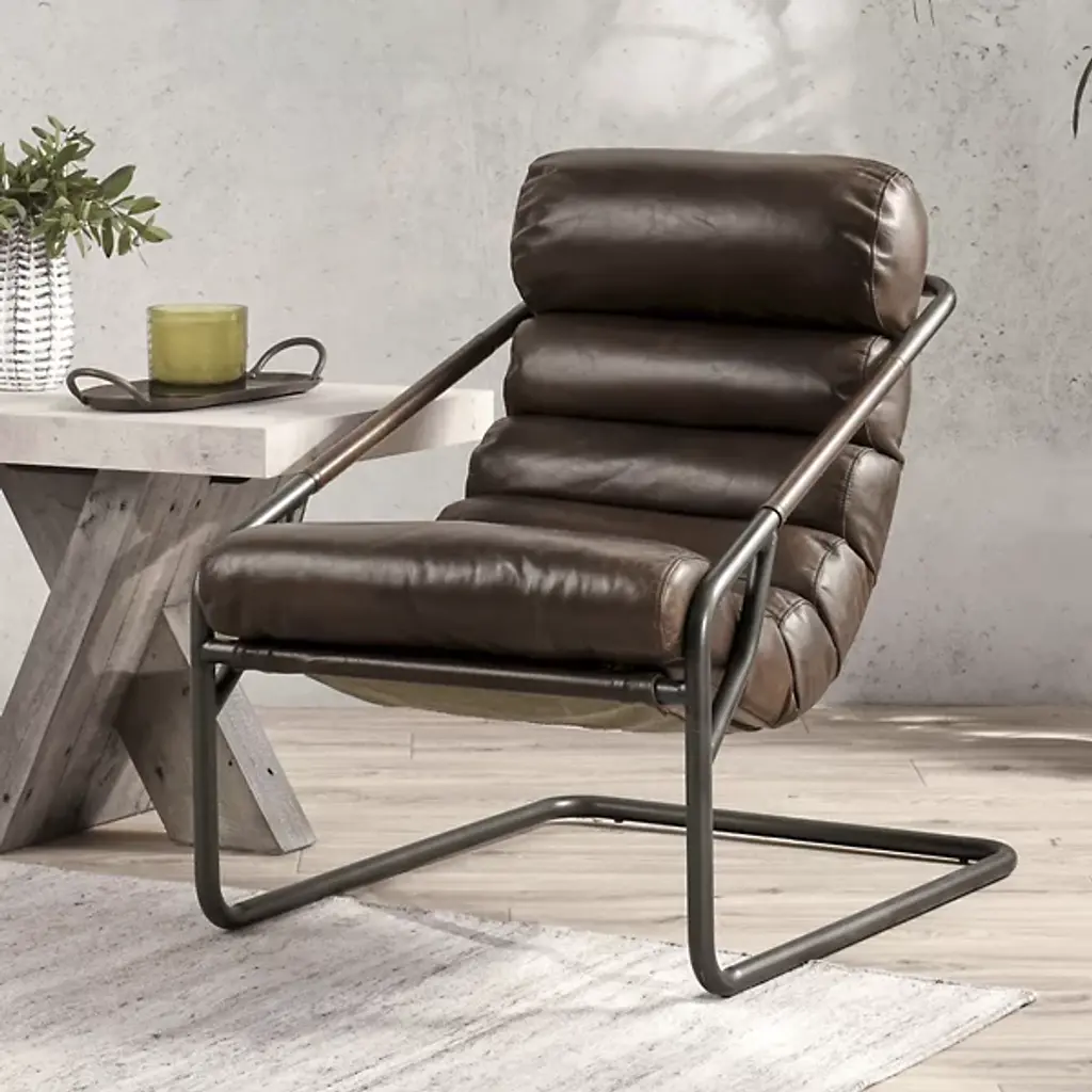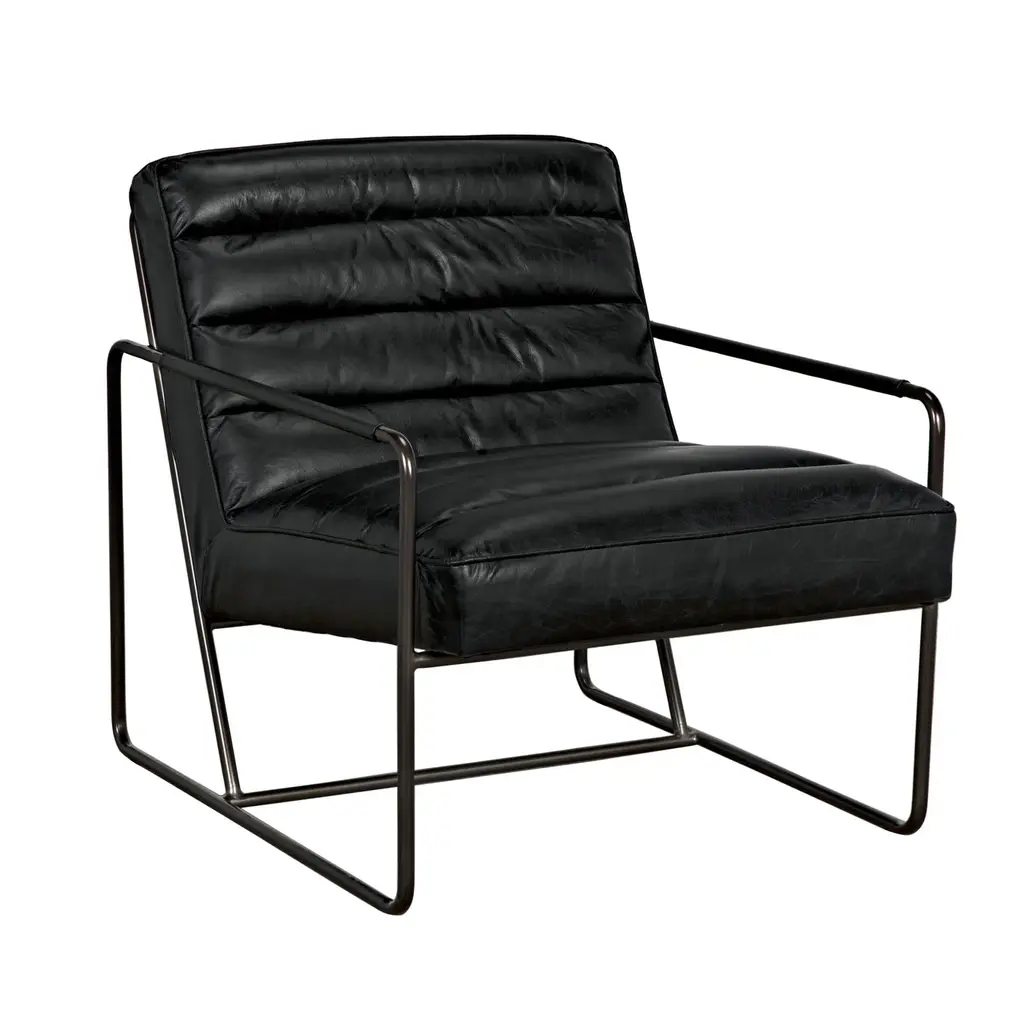 The Jackson Lounge Chair from Classic Home brings the perfect blend of style and functionality. Crafted with top-grain leather, it offers a luxurious and durable seating option. The sleek black iron frame provides a sturdy base while enhancing the chair’s modern aesthetic. Featuring a channel-back design and richly dyed leather upholstery, this chair adds a touch of sophistication and comfort to any space, making it a versatile addition to your decor.