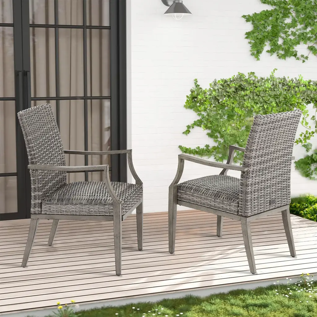 with durable, all-weather resin wicker over a powder-coated steel frame, this chair is built to withstand anything life throws your way. Unlike real wicker which dries out and cracks, resin wicker is flexible and fade-resistant, which means it stays like new season after season. What's more, all-weather wicker doesn't absorb water and also allows for air flow, making it the perfect choice for the poolside! In addition, this chair is virtually maintenance-free and cleaning it is as simple as spraying it down with your garden hose or wiping it with a solution of mild dish soap and water. The chairs even stack for easy, off-season storage. A charming blend of classic elegance and lasting function, this lounge chair is just what you need to unwind in style after a day's work.Features:Finish: EspressoMaterials: Resin Wicker, SteelSteel frame for extra durabilityCrafted to withstand seasons of inclement weatherHose off and wipe cleanTufted surface adds extra comfortAssembly requiredSpecifications:Product Dimensions: 36" H x 19" W x 30" DProduct Weight: 64 lbsSeat Height: 15"