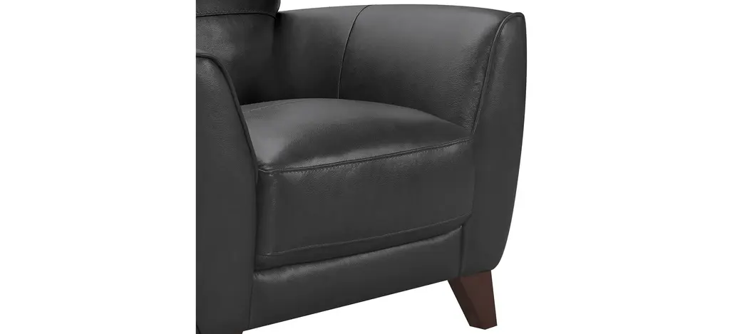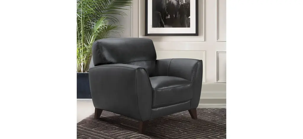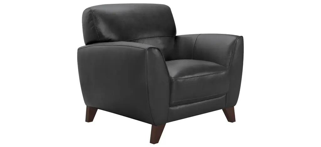 The Jedd Chair is an ideal choice for anyone looking for a perfect balance of comfort and sophistication. Ideal for the modern living room, the chair is upholstered in genuine cowhide leather and padded with Dacron foam. the Dacron assures that the leather will not wrinkle or crack while providing a degree of comfort that is unmatched by alternative foam padding. Durable and highly pleasing to the eye, the Jedd features white accent stitching and brown hardwood legs that brilliantly compliment the chair's design.