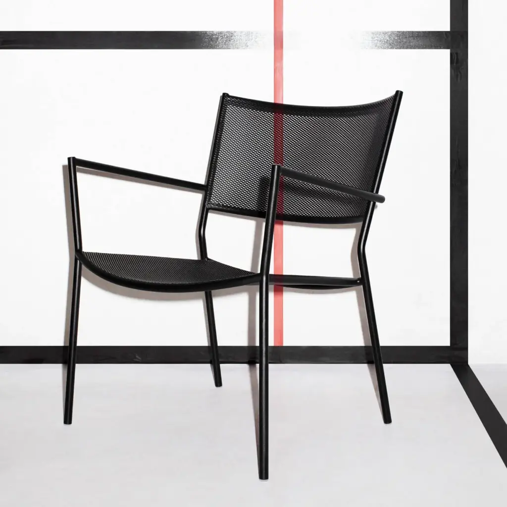 Chris Martin's innovative outdoor seating with its steel-tubing framework easily adapts as a generously scaled lounge chair. Sturdy, lightweight and stackable, Jig Mesh complements any alfresco living space, with a choice of appealing colorways. These chairs also pair easily with Tio and Odette tables from maker Massproductions.