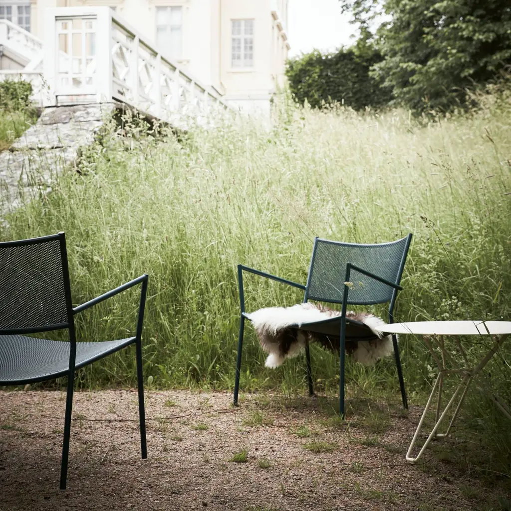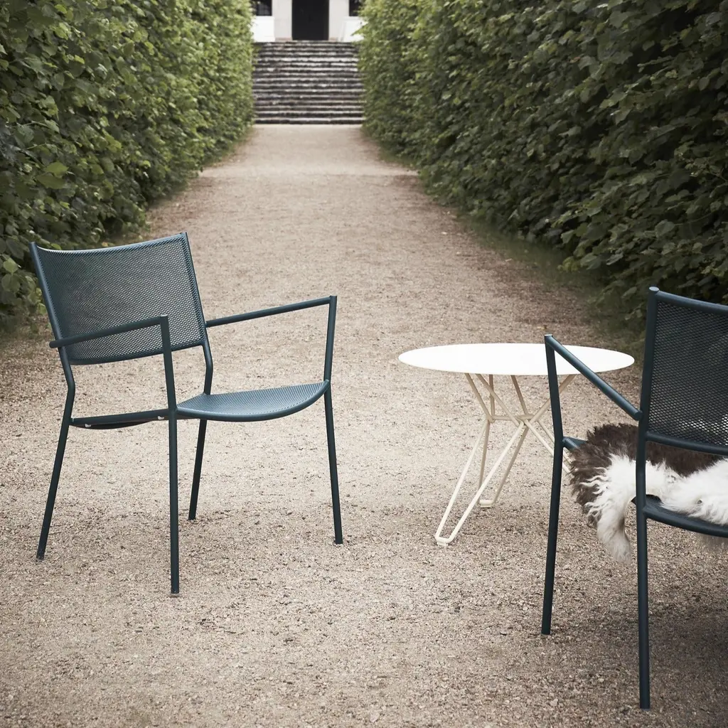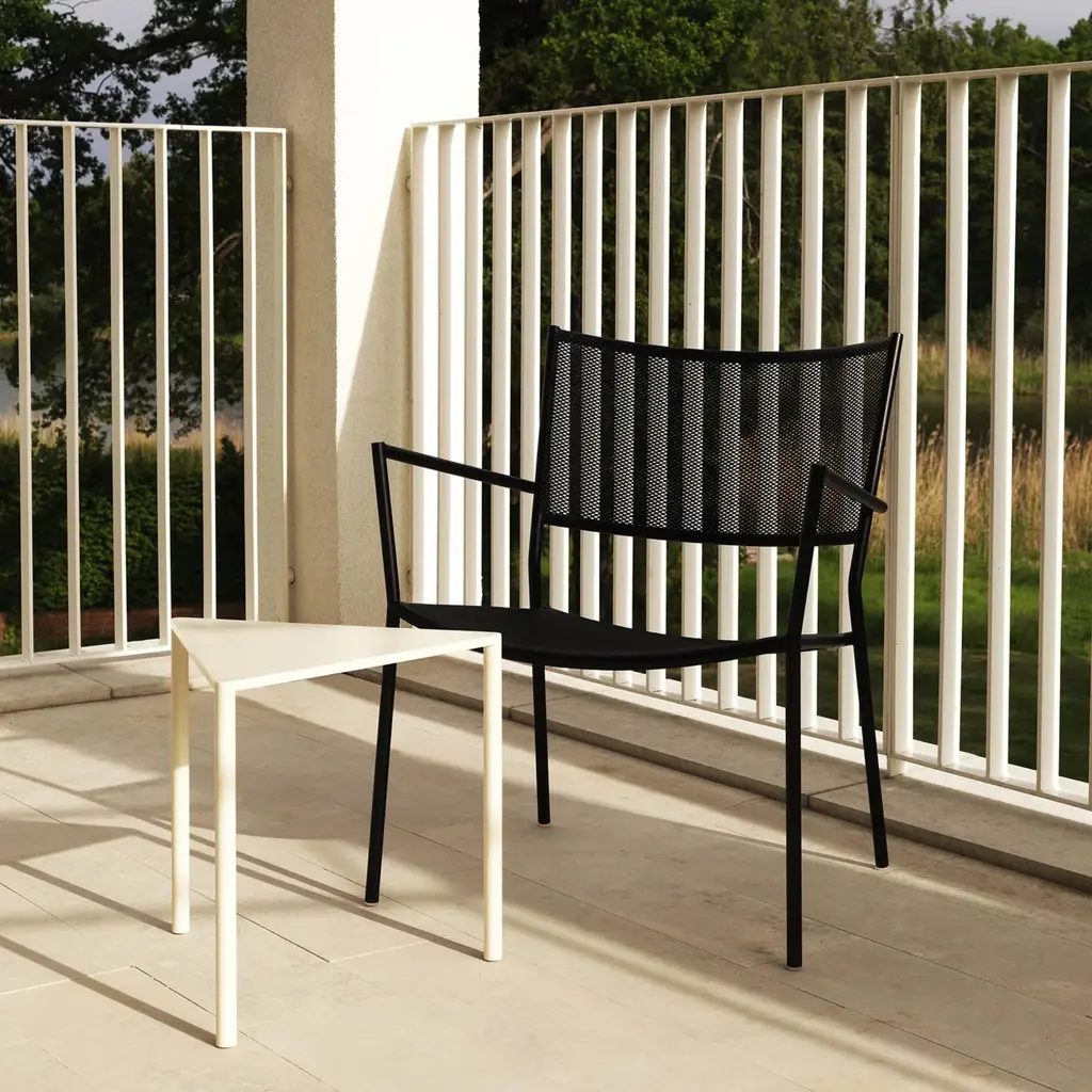 Chris Martin's innovative outdoor seating with its steel-tubing framework easily adapts as a generously scaled lounge chair. Sturdy, lightweight and stackable, Jig Mesh complements any alfresco living space, with a choice of appealing colorways. These chairs also pair easily with Tio and Odette tables from maker Massproductions.