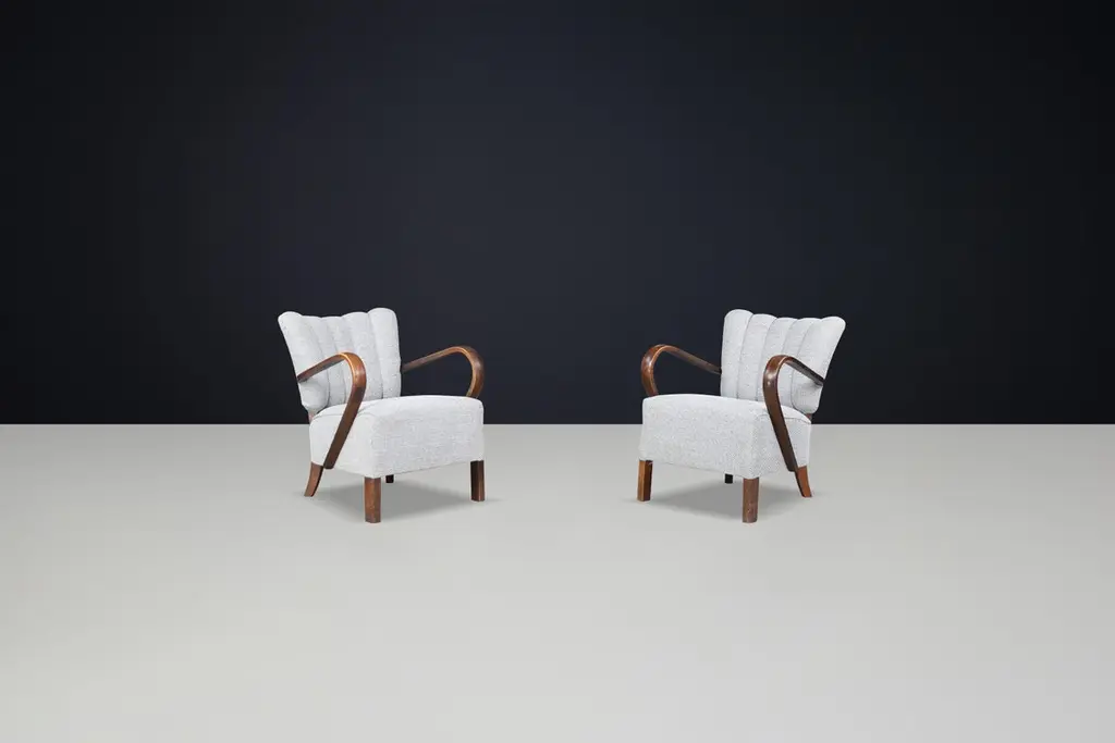 Jindrich Halabala Re-Upholstered Patinated Bentwood Lounge Chairs From The 1930s