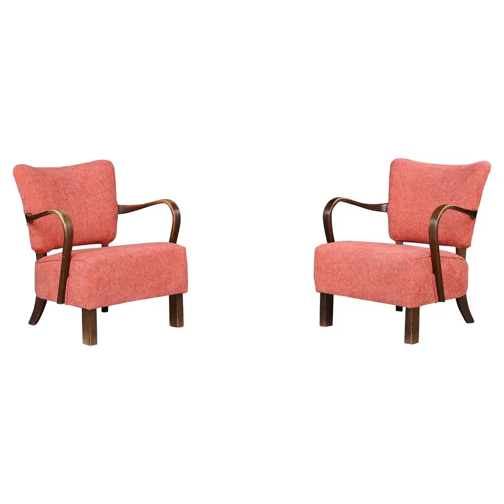 Jindrich Halabala Re-Upholstered Patinated Bentwood Lounge Chairs From The 1930s