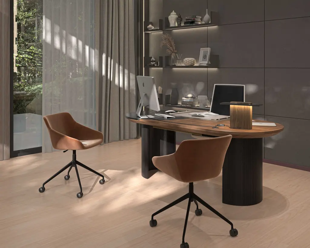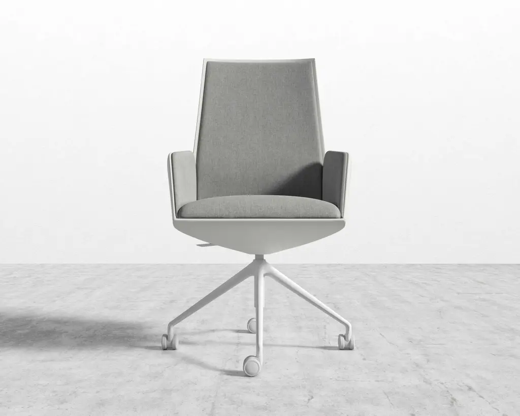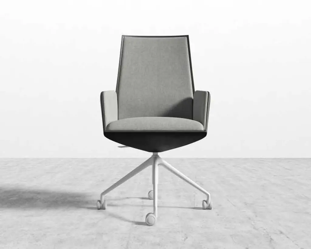 Touched with luxuriant charm, the structured silhouette of the Julian Office Chair portrays an air of sophistication. Blending sharp lines, modern details, and two-toned upholstery in perfect harmony, the Julian adds a new dimension to any office setting. Pair with any of our contemporary desks to complete your space.