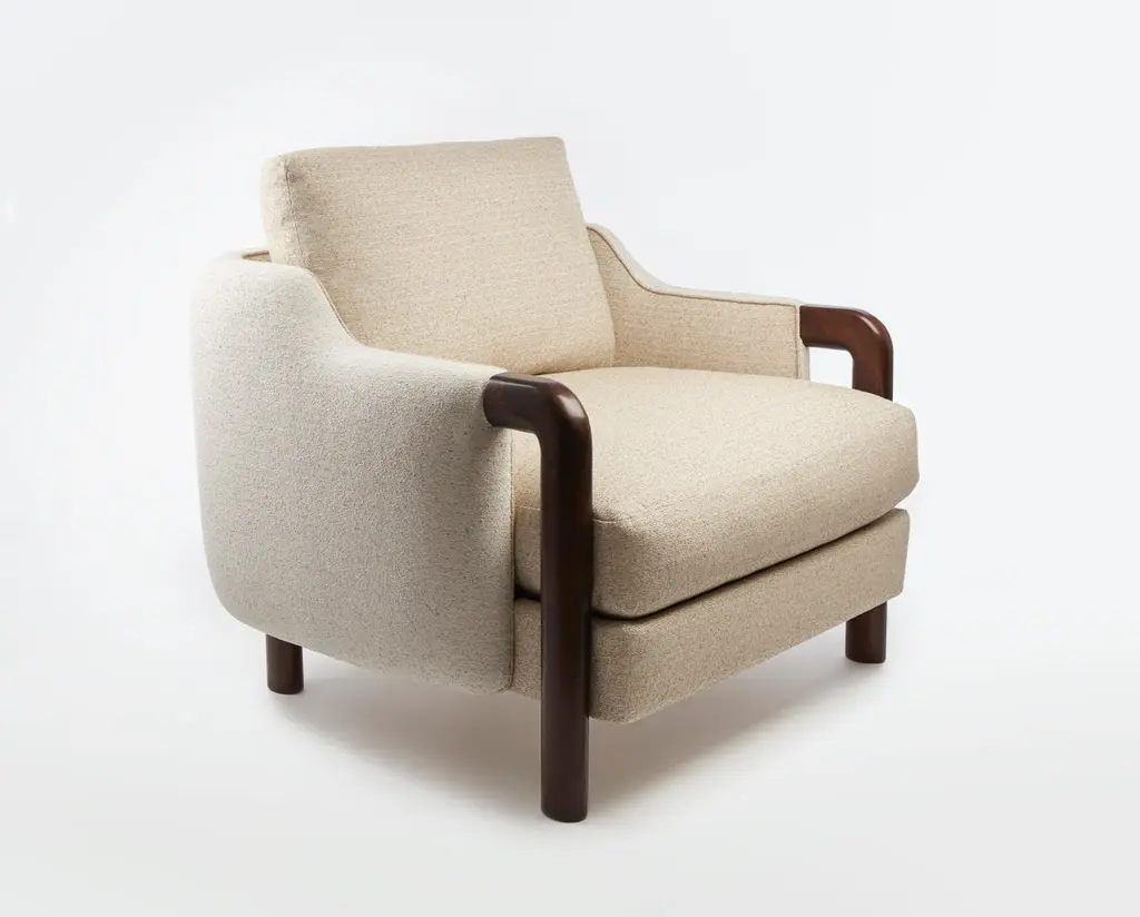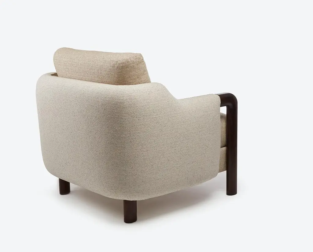 Junior Armchair by Gisbert PöpplerDimensions: H 82 (SH43) x W 84 x D 81,5 cmMaterials: American walnut, coil springs upholstered with padding and downA place in the clouds! The Junior Chair is all about comfort. The low seating height, down feather padded back, and seat cushions make you want to sink into this chair and preferably never get up again! At the same time, the armchair is not space-consuming. The harmonious volume and clean lines of this piece let it confidently blend in with its environment, providing a small oasis of cozy security.The Junior chair has a wooden frame made of American walnut, the core is made of coil Springs upholstered with padding and down.All of their upholstery pieces are COM prices.The prices do not include any fabric. Gisbert Pöppler studied architecture at California College of Arts and Crafts, San Francisco and Technische Universität, Berlin, graduating in 1996 with a Diplom Ingenieur. After completing his studies he spent several years working for various firms in Berlin, developing new architecture after the German re-unification. In 1999 Gisbert Pöppler founded Prinz–Pöppler, a partnership with architect Ilona Prinz – together creating office environments for start-up organizations filling the dynamic Berlin landscape. Since 2004 Gisbert Pöppler has been working independently as a full-service architectural studio, offering unconventional end-to-end design solutions for corporate and residential clients.