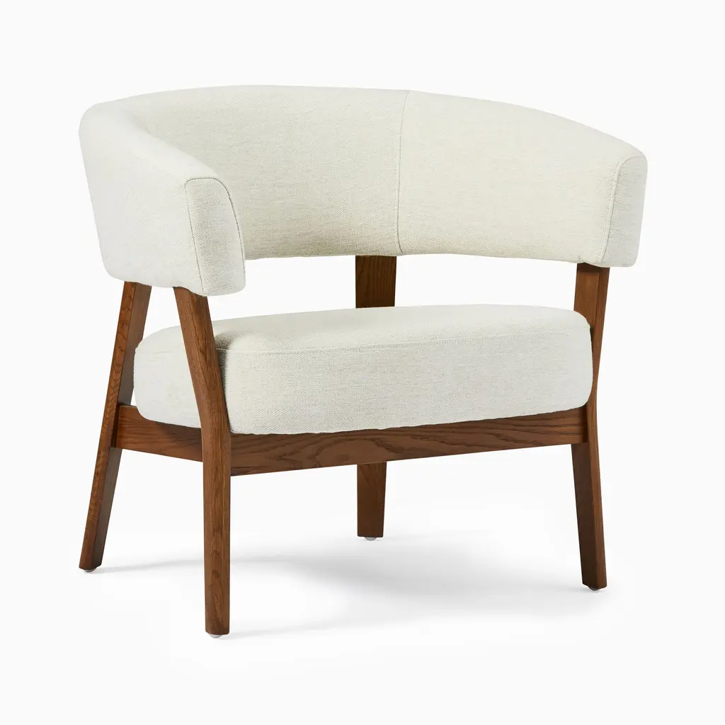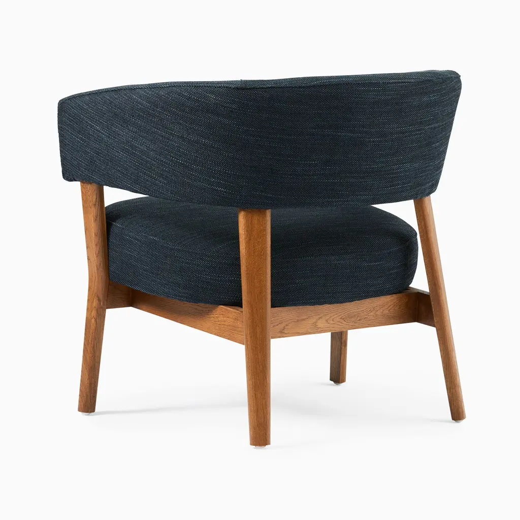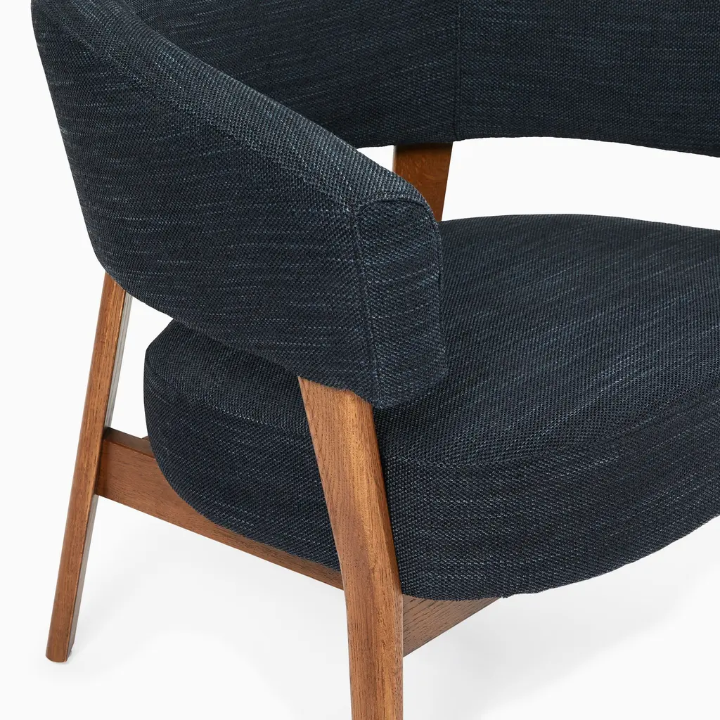 A wraparound back gives modern definition to our Juno Chair, providing extra comfort in tandem with its cushy seat. Its handsome exposed wood frame is kiln-dried for added strength and meets contract-grade standards.