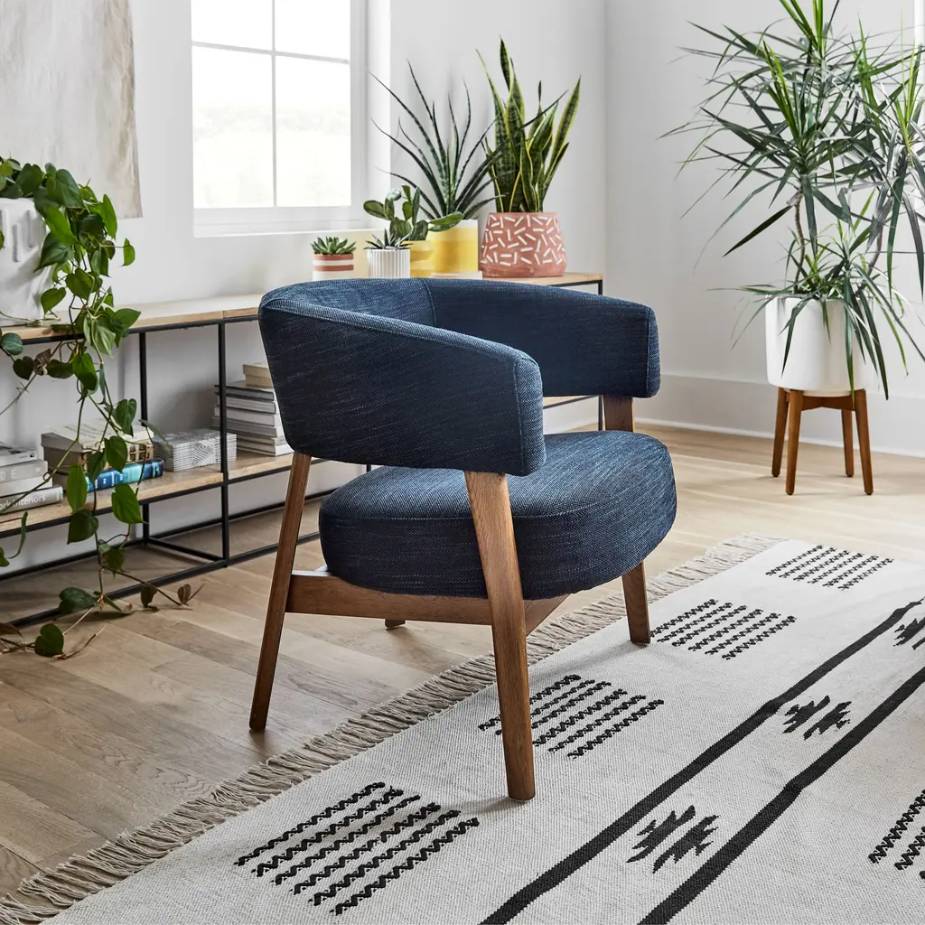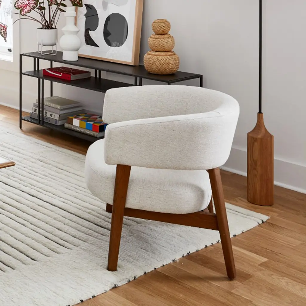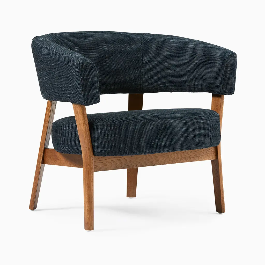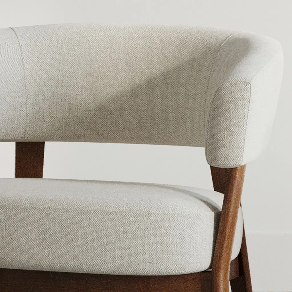 A wraparound back gives modern definition to our Juno Chair, providing extra comfort in tandem with its cushy seat. Its handsome exposed wood frame is kiln-dried for added strength and meets contract-grade standards.