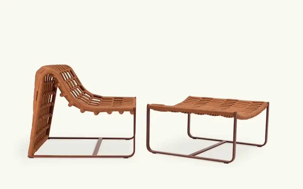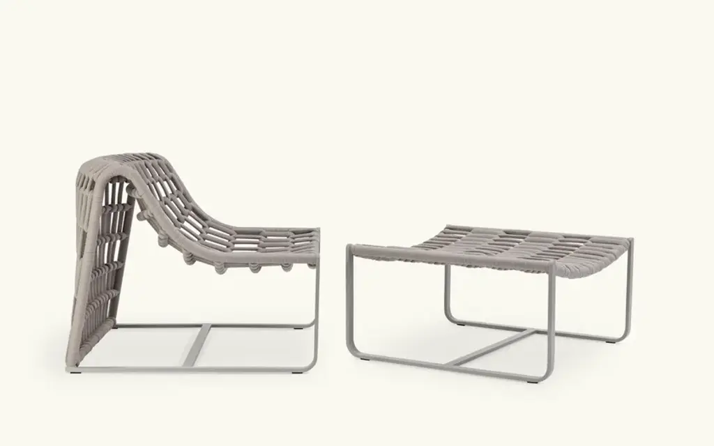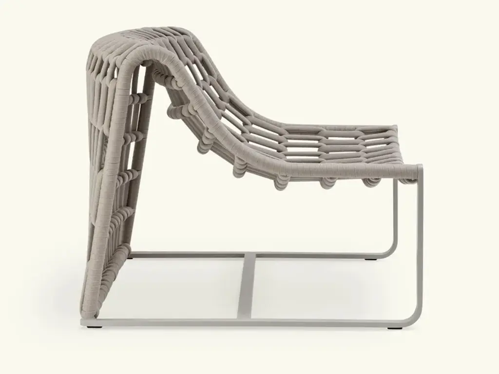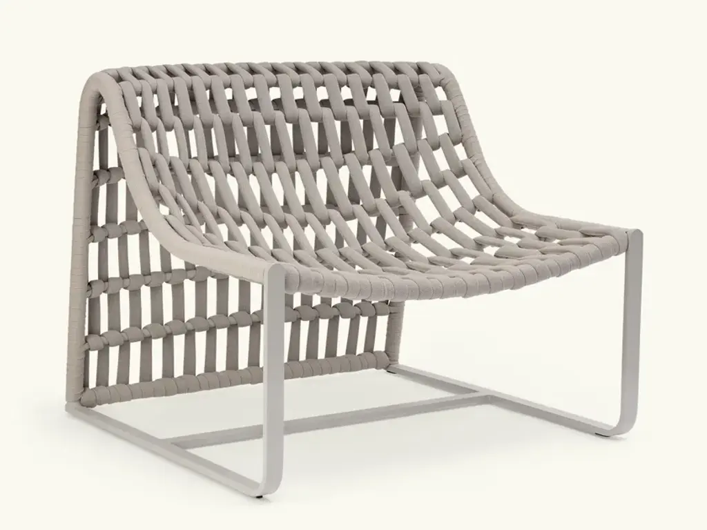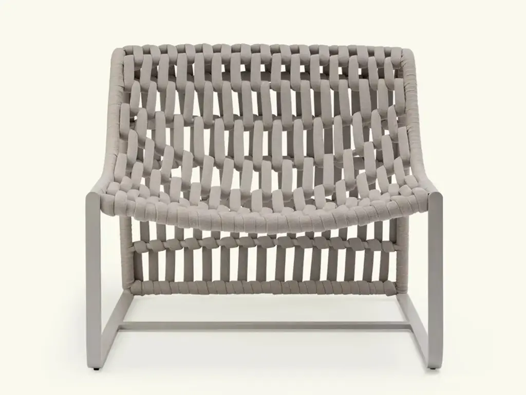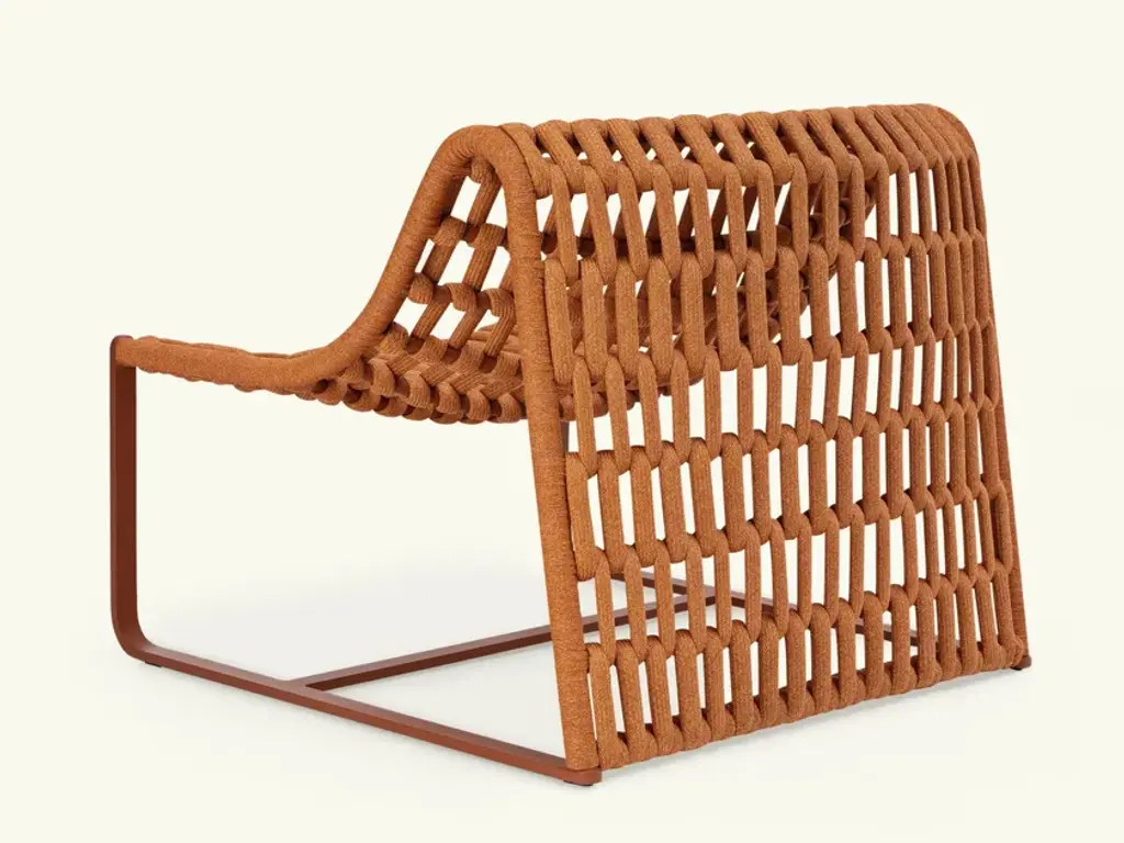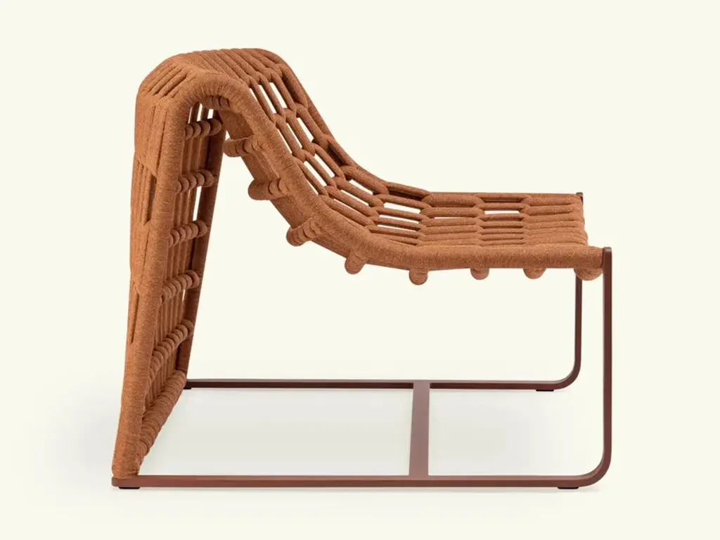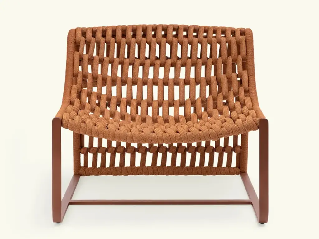 Juta is a lounge seat with metal and hand woven rope structure.Colors:6000149 - Juta grey lounge seat6000150 - Juta green lounge seat6000151 - Juta brick red lounge seat6000152 - Juta brown lounge seatSoft, gentle, sinuous: the Juta collection was born from the idea of a fabric seat suspended on a metal frame. A design that welcomes, embraces, relaxes. The rope, woven completely by hand, in addition to characterizing the seat from an aesthetic point of view gives the object softness and lightness. Juta is cozy, but also light: it can be moved easily from one part of the garden to another. Juta is offered in four color variations: from more natural shades to brighter and bolder ones, for an even more iconic style.