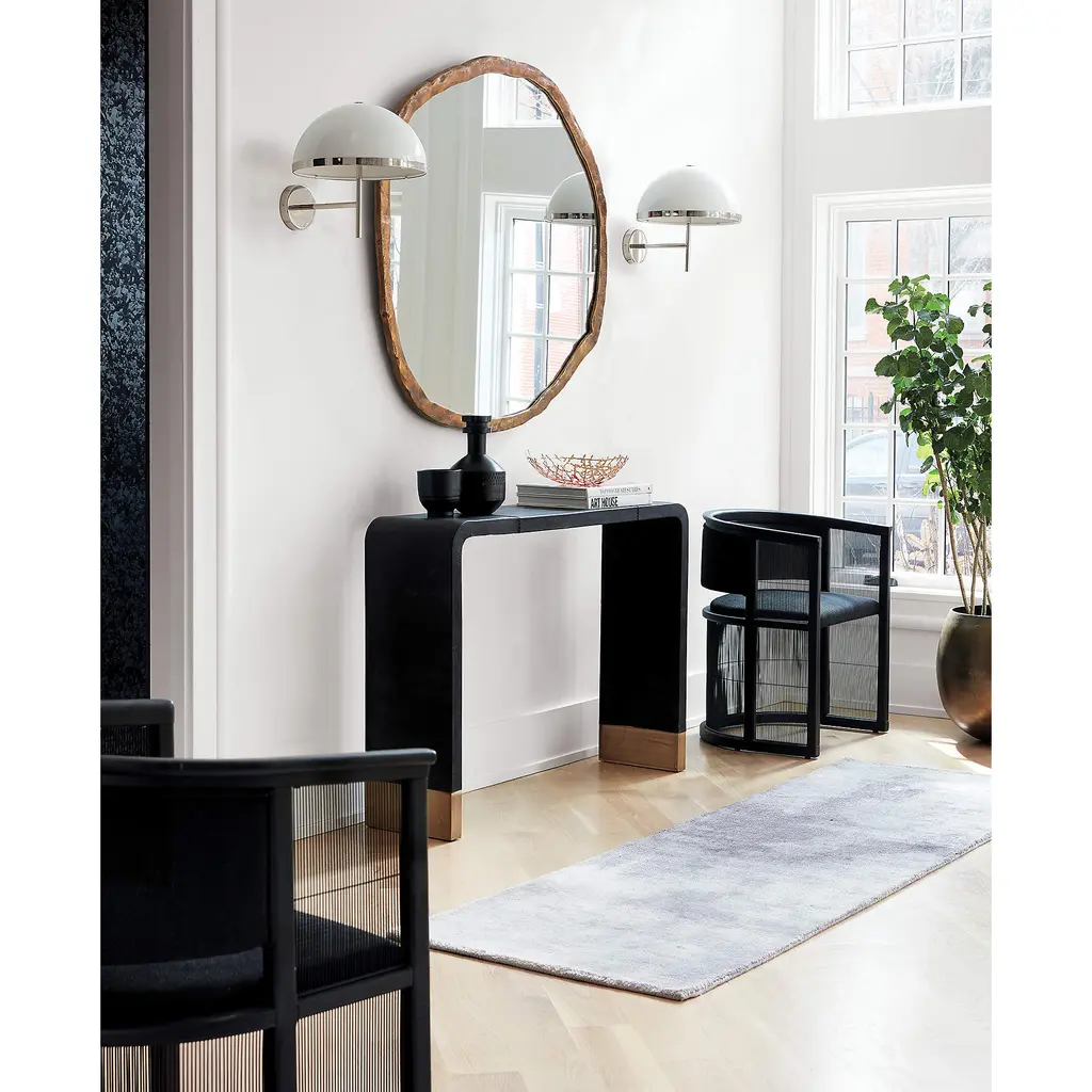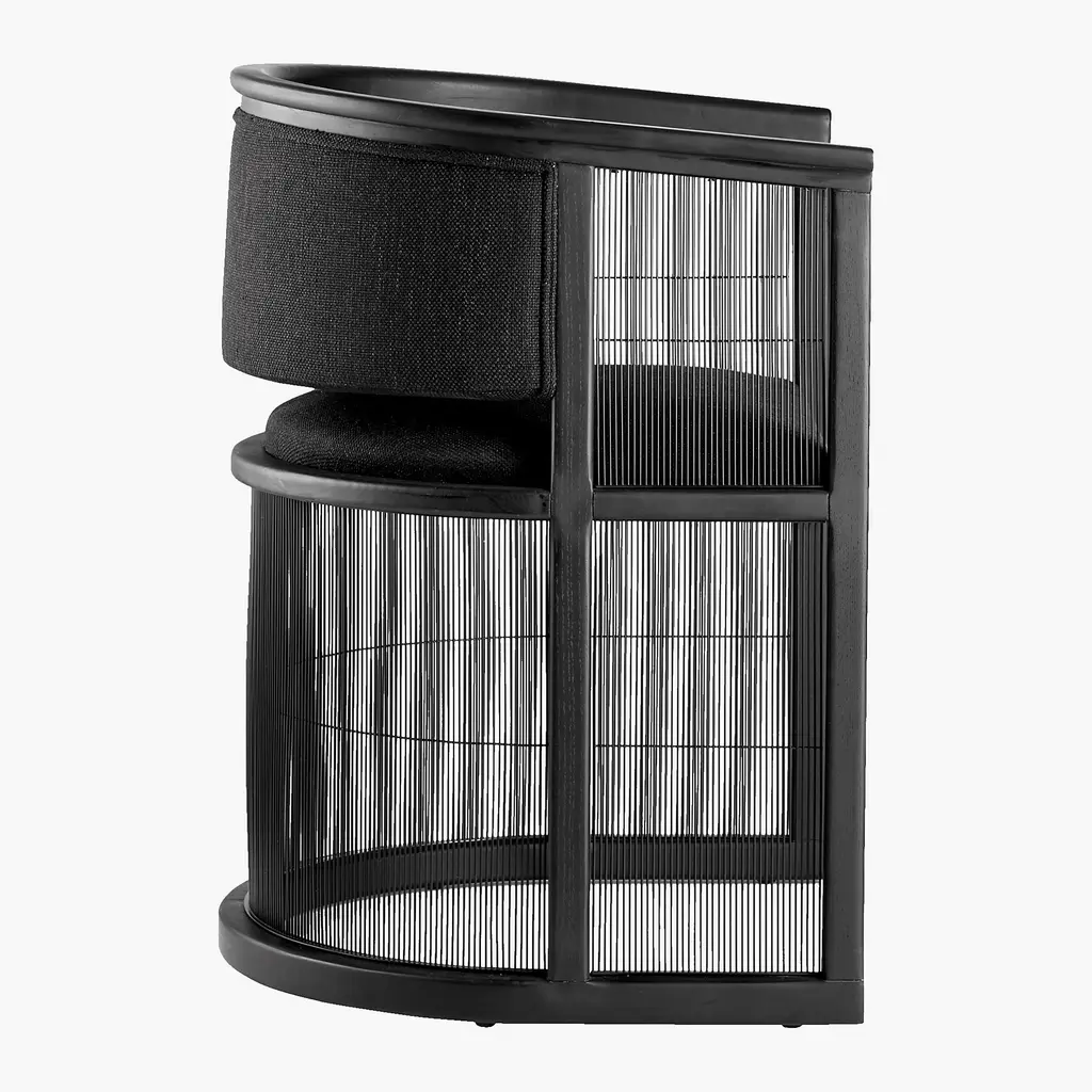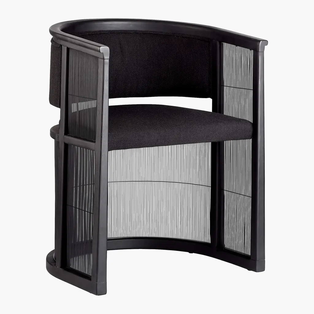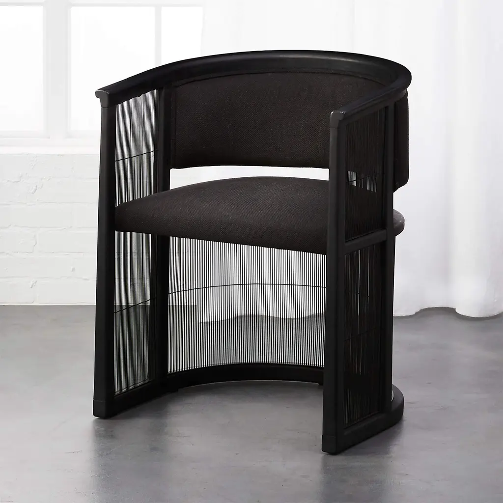High-end design for a modest price lies at heart of our collaboration with Los Angeles-based designer Ross Cassidy. Inspired by Japanese shoji screens, the all-black Kaishi chair instantly elevates the aesthetic of an office, dining or living space. Balanced by see-through steel mesh screening, black ash wood frame creates surrounding sense of comfort, with upholstered back and seat cushions that define rather than distract from the overall look. CB2 exclusive.