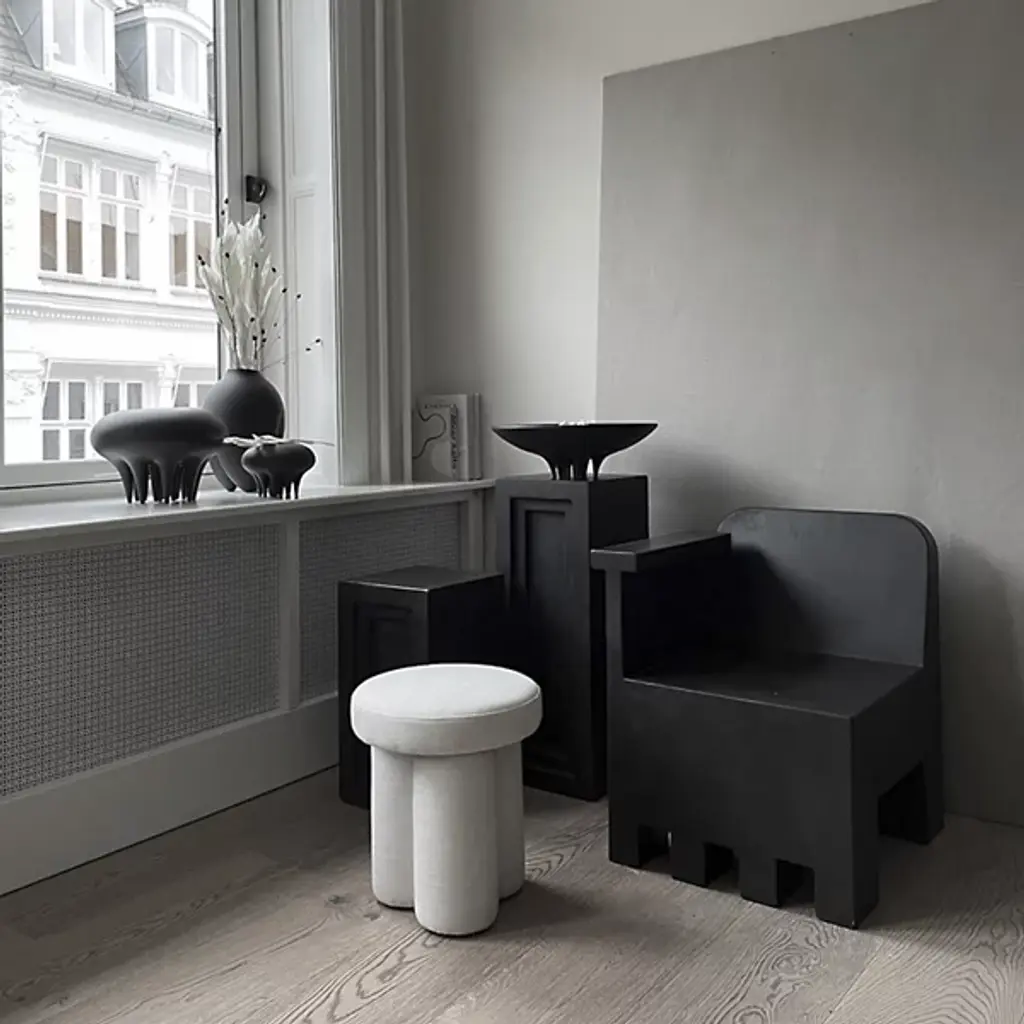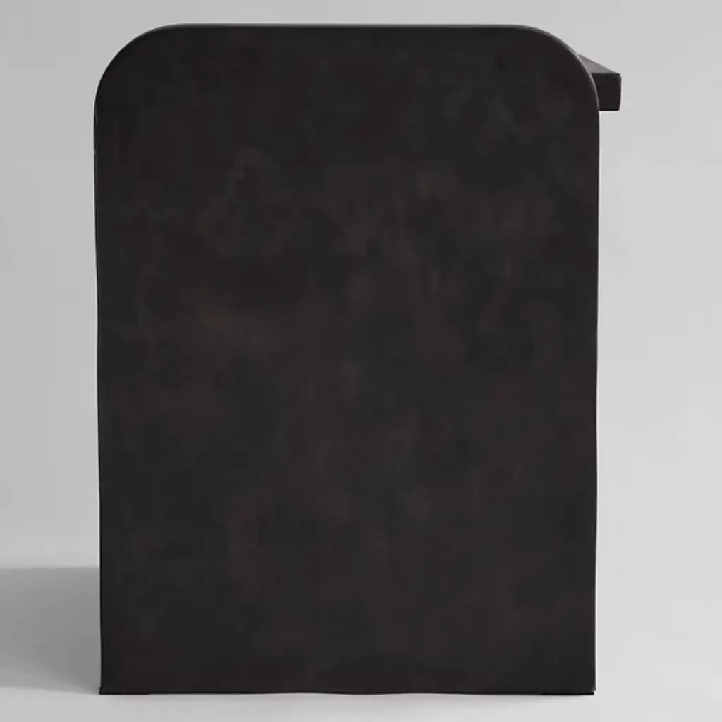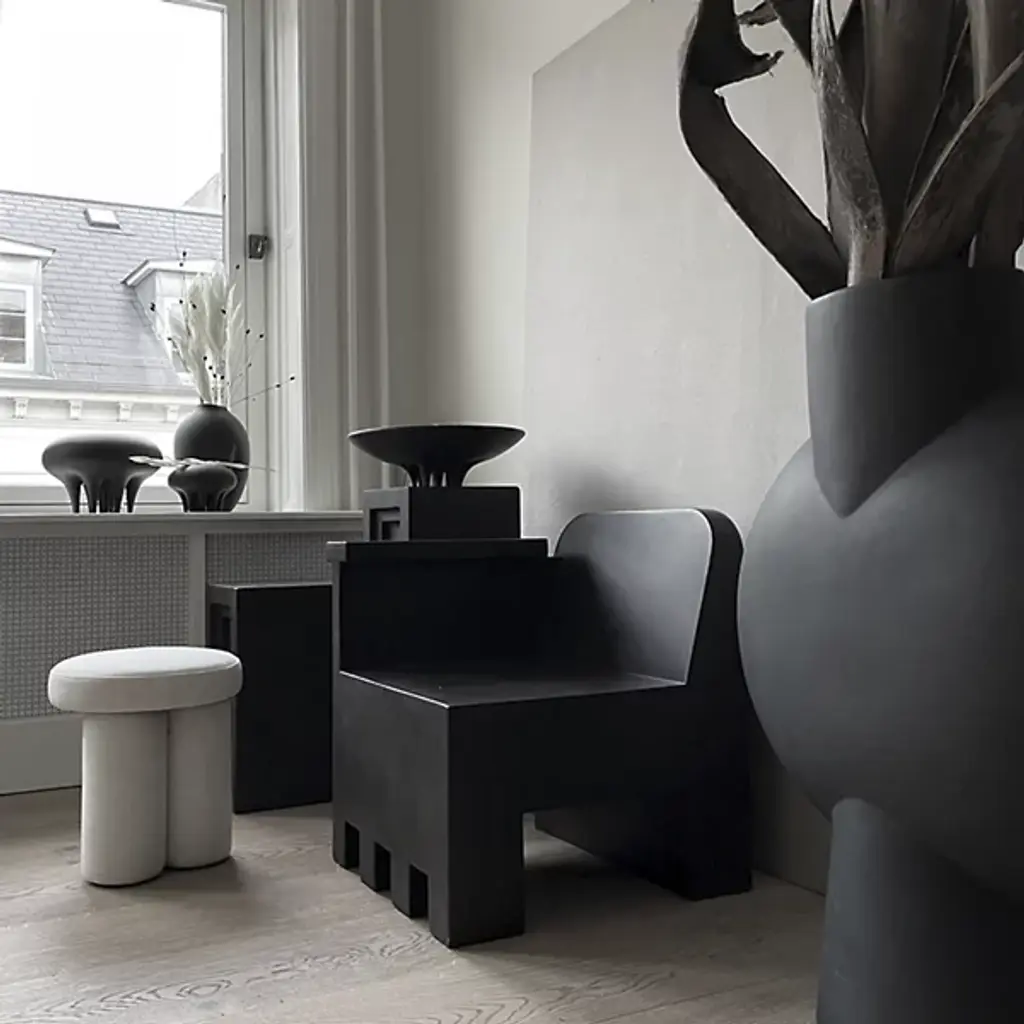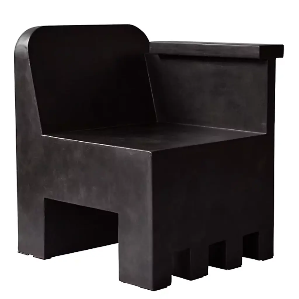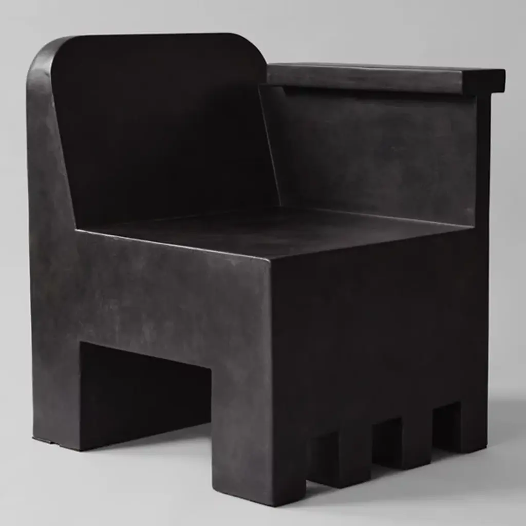 Introducing the Kamodo Lounge Chair from 101 Copenhagen, an abstract, blocky design intersecting Japanese tradition with modern appeal. Named after traditional Japanese clay ovens and designed by Kristian Sofus Hansen and Tommy Hyldahl, its minimalistic fiber concrete construction looks at the ground-level air openings of each oven to act as the seat’s sturdy legs. Its asymmetrical design and one-sided armrest conspire to produce a memorable architectural appearance, softened slightly to create relaxed comfort. Each chair is hand-painted, offering a unique textured finish that creates a singular character.