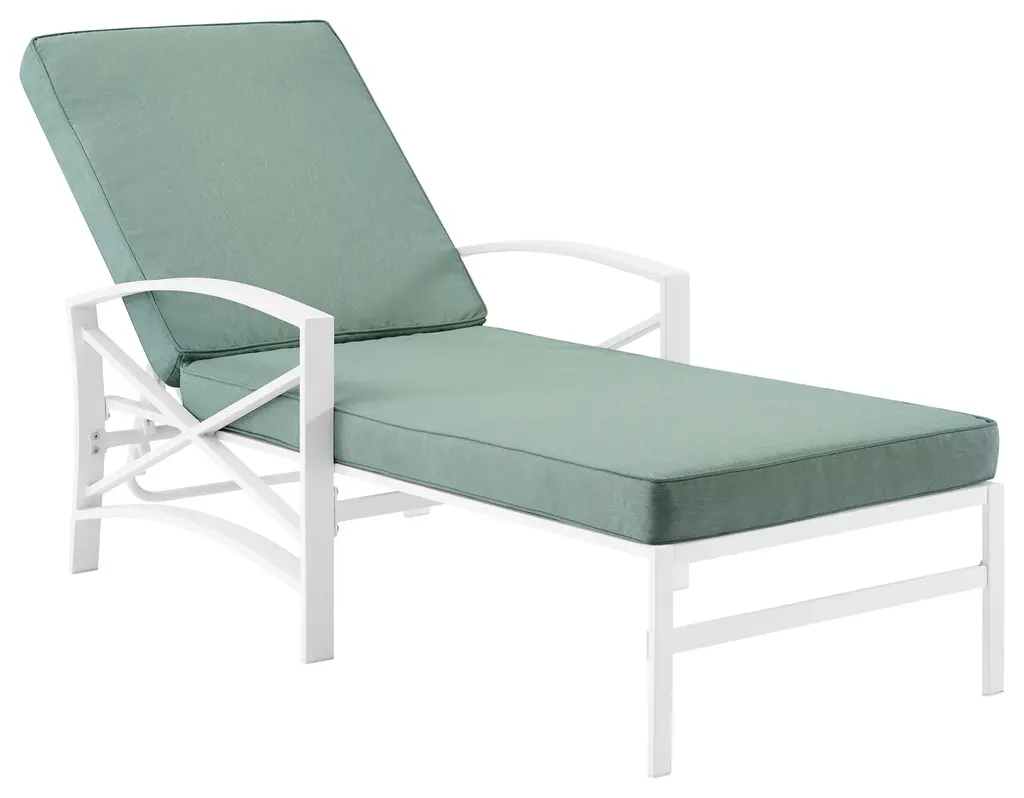 Transform your outdoor space into your own relaxing oasis with the Kaplan Chaise Lounge Chair. This European-inspired design invokes afternoons spent admiring the ocean from sandy beaches and picturesque hillsides. Adjust the backrest to your favorite of the six different positions, settle into the plush cushions, and feel your worries start to drift away. The durable frame is made from all-weather rust-resistant steel for lasting quality and minimal maintenance. Dense cushions are outfitted with covers that feature eye-catching contrast piping, and are treated for resistance to UV rays, fading, and moisture.