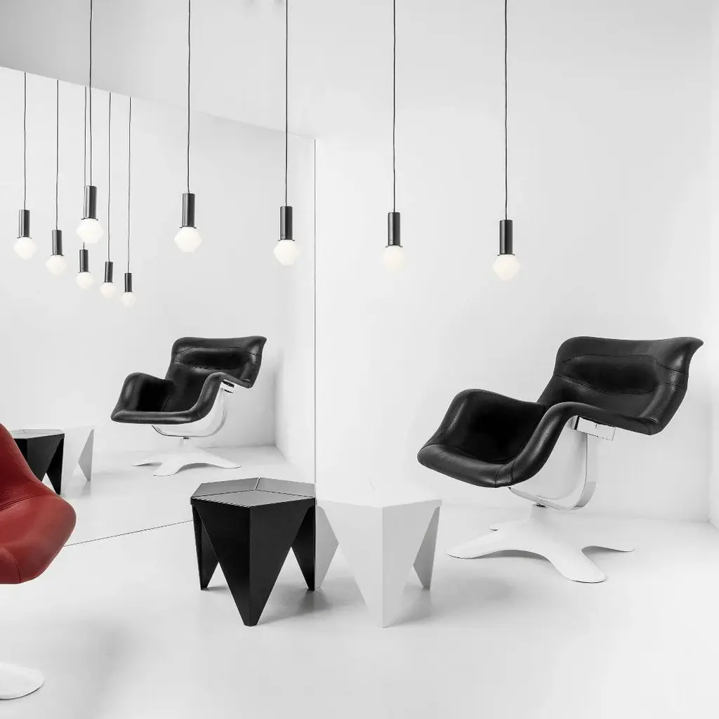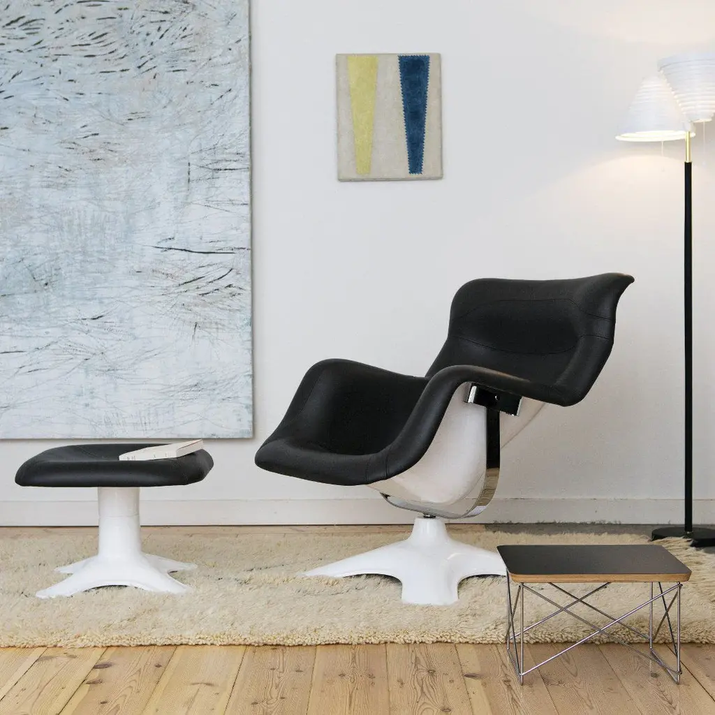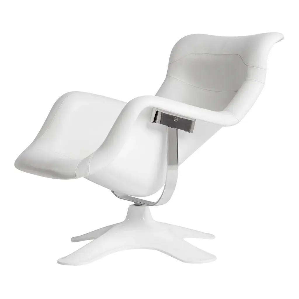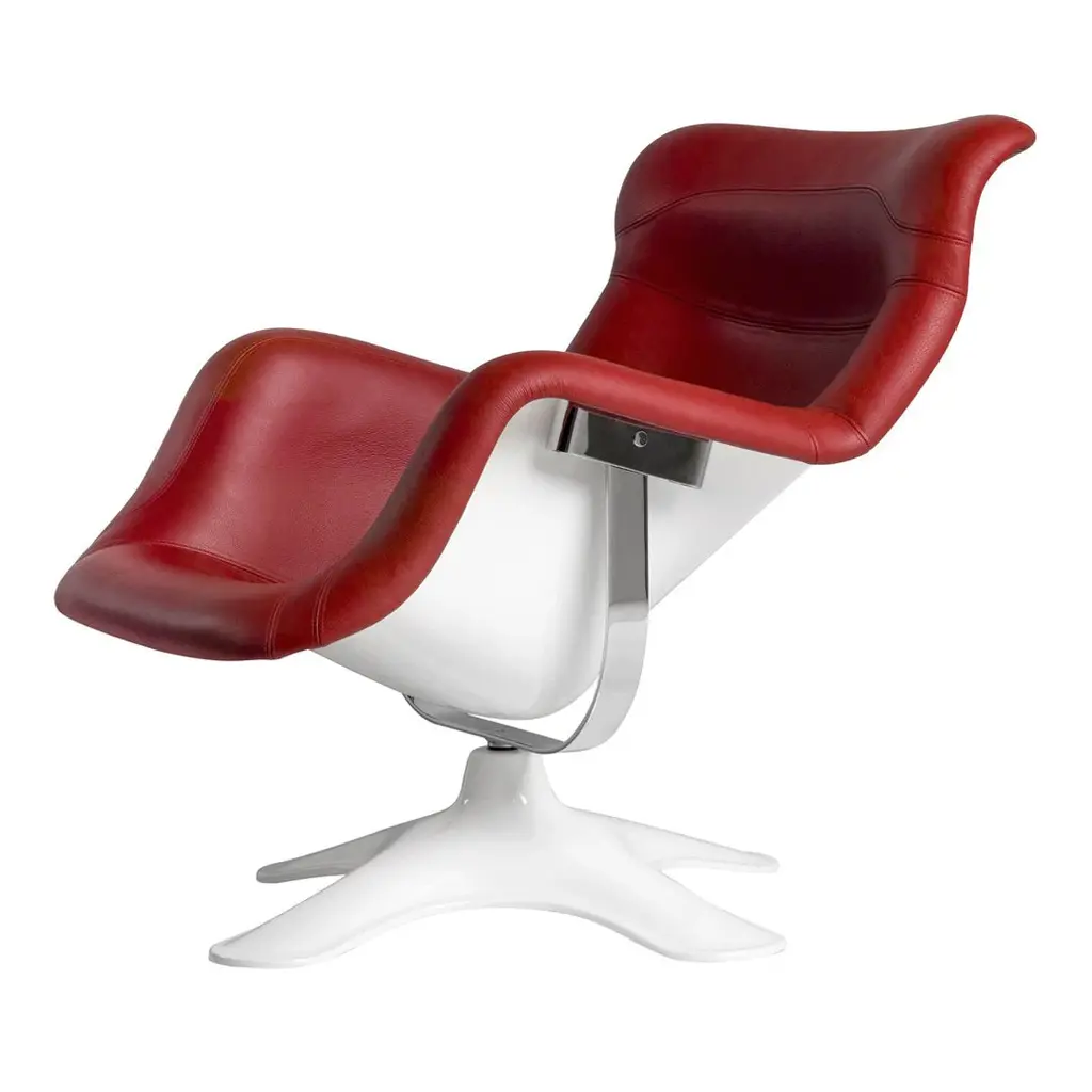 Distinct in style and exceptionally comfortable, the Karuselli Lounge Chair exemplifies designer Yrjö Kukkapuro interest in achieving ultimate comfort through a union of function, ergonomics, and organic form. Shaped to echo the human body, the inspiration for the Karuselli reportedly came about when the designer was playing outside making snow chairs with his daughter. In search of the perfect dimensions, Kukkapuro spent several years sculpting the chair, arriving at the iconic form in 1964. An immediate international success, the chair prompted Gio Ponti to choose Karuselli for the cover of Domus in 1966 and inspired Sir Terence Conran to proclaim it his favourite chair.