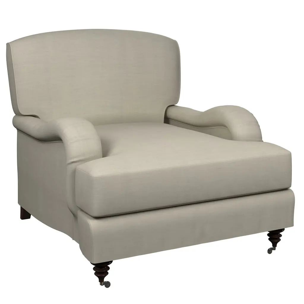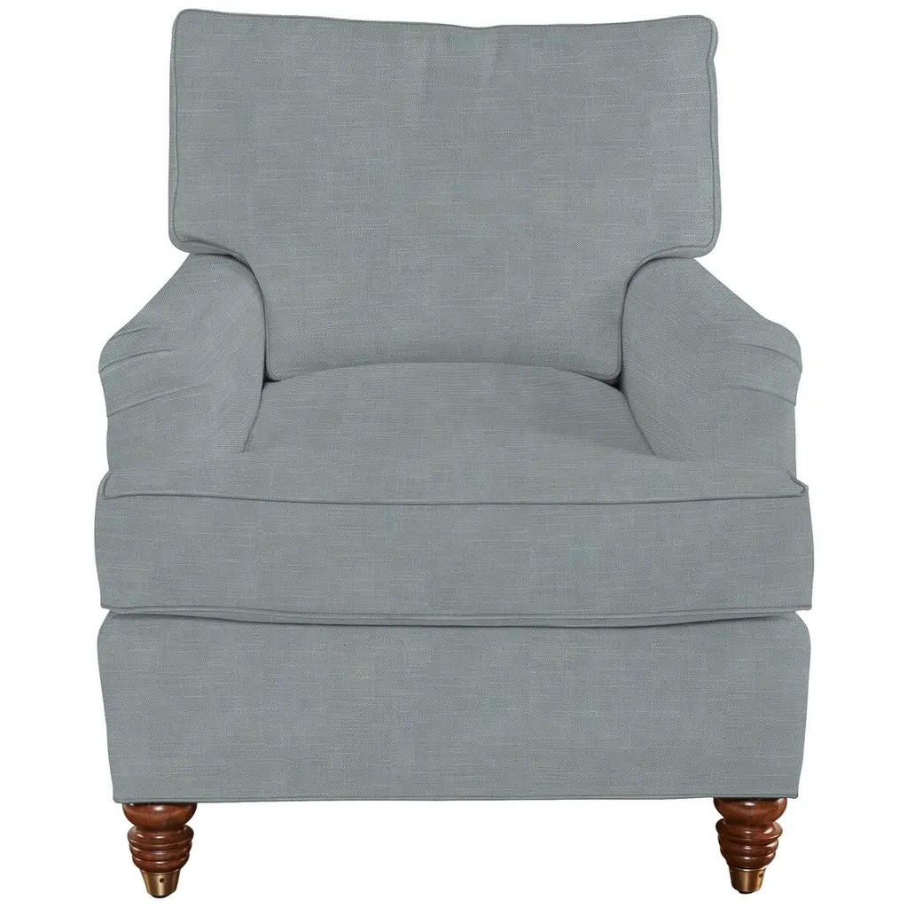 Exclusive to One Kings Lane: This English arm chair is timeless in design and a beloved classic, featuring beautiful turned wood legs. It is upholstered in Crypton--an eco-friendly high-performance fabric--which repels stains, spills, bacteria, and mold. Constructed of an engineered hardwood-laminate frame, eight-way hand-tied suspension system, and a spring foam cushion with down-proof ticking ensure long-lasting comfort and support. Each piece is handcrafted by skilled artisans in High Point, NC and offers a lifetime warranty on the frame and suspension system and a limited lifetime warranty on the seat cushion.