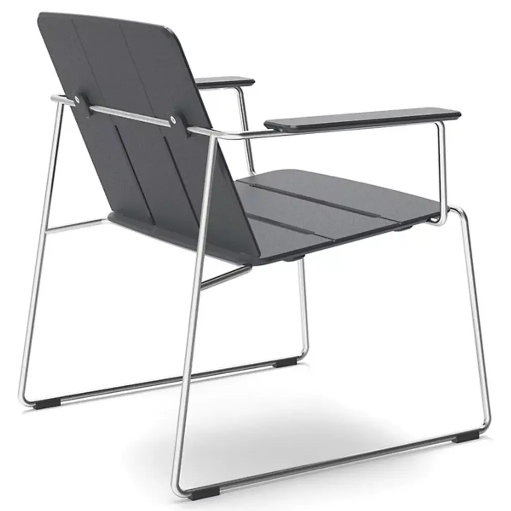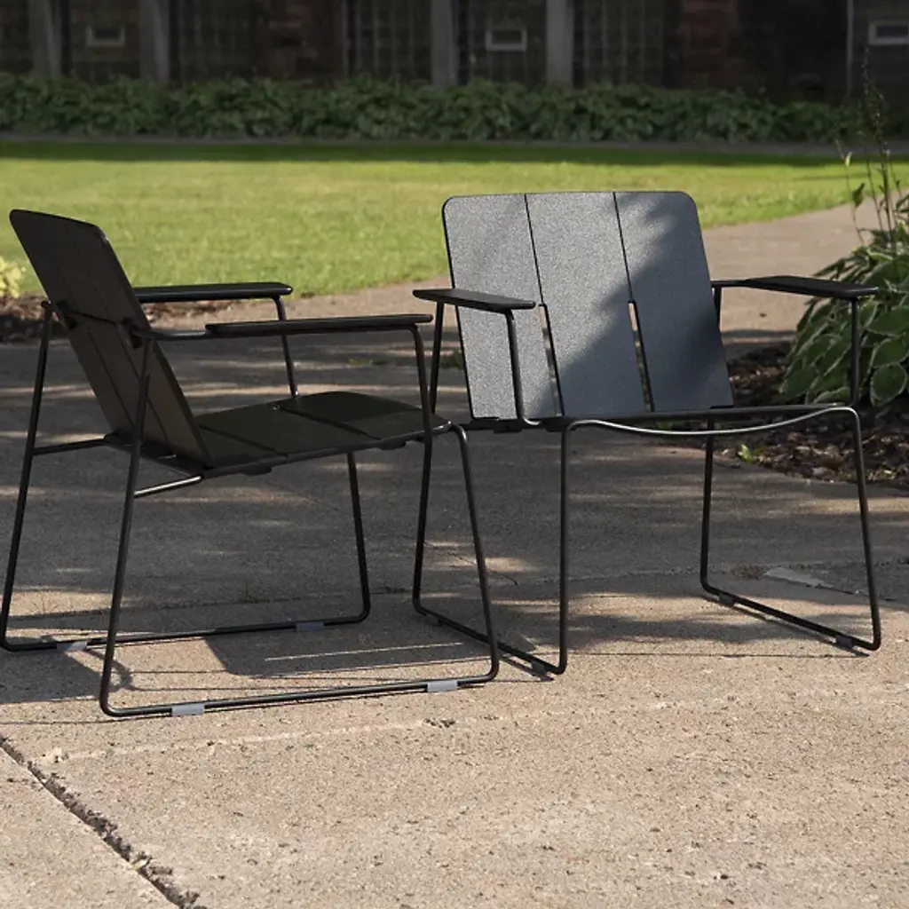 The Keene Outdoor Lounge Chair from Loll Designs combines refined contemporary design with carefully considered sustainable craftsmanship. Each piece is made in the USA, using a slender stainless steel frame paired with a contoured seat, backrest, and armrests formed from recycled HDPE, mostly from post-consumer milk jugs, which are not initially pigmented so that rich color can be added later. The seat’s built-in drainage slots prevent water accumulation, while small protective glides safeguard flooring. This chair is lightweight yet strong, easy to move around, and engineered with outdoor relaxation in mind.