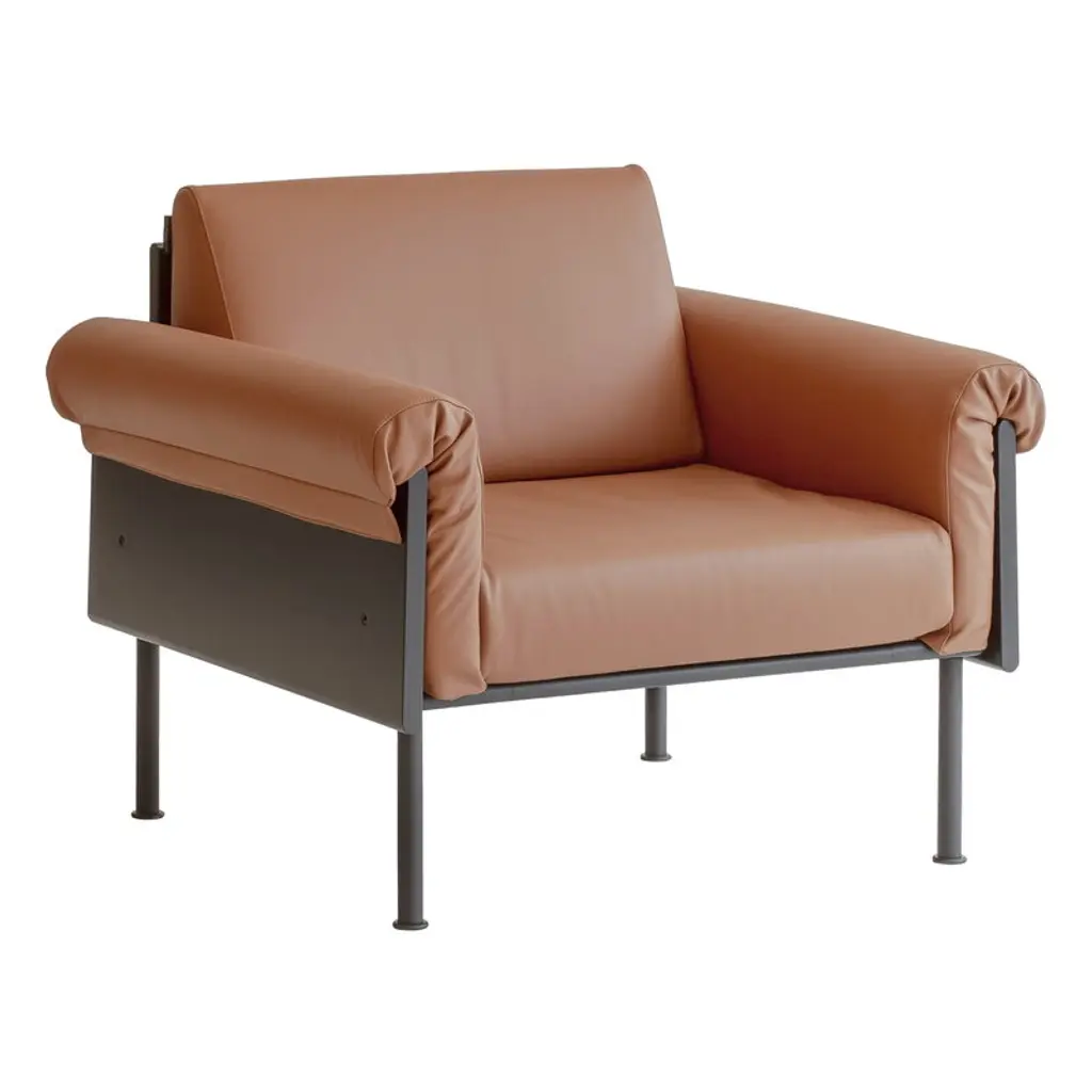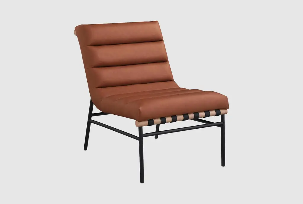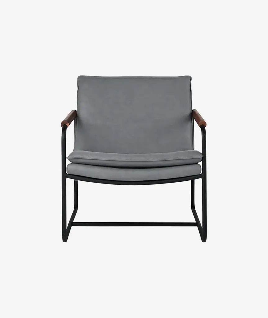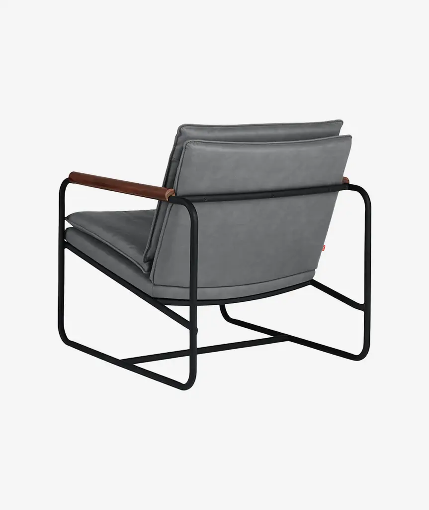 The design goal for Kelso was to create a visually striking accent chair that didn’t sacrifice comfort for style. This was achieved by clever use of materials and construction, resulting in an extraordinary chair that looks as good as it feels when lounging in it. Details like a tubular steel frame and integrated wood dowel armrests give Kelso a confident, industrial‐modern aesthetic which is juxtaposed against delicate, knife‐edge seat and back cushions that offer a surprisingly comfy place to relax. Fabric with a nubuck‐like feel was chosen to further enhance the chair’s allure and give it a warm, tactile quality.