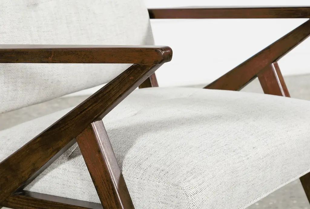 Get your mid-century modern fix for less with our ultra-stylish Kendrick Stone accent chair. The sleek, distinctive lines of its exposed wood frame attract everyone’s attention, while button tufting and tailored upholstery add classic sophistication. This design will fit right into any room, and invite anyone to sit back, relax and lounge the hours away.