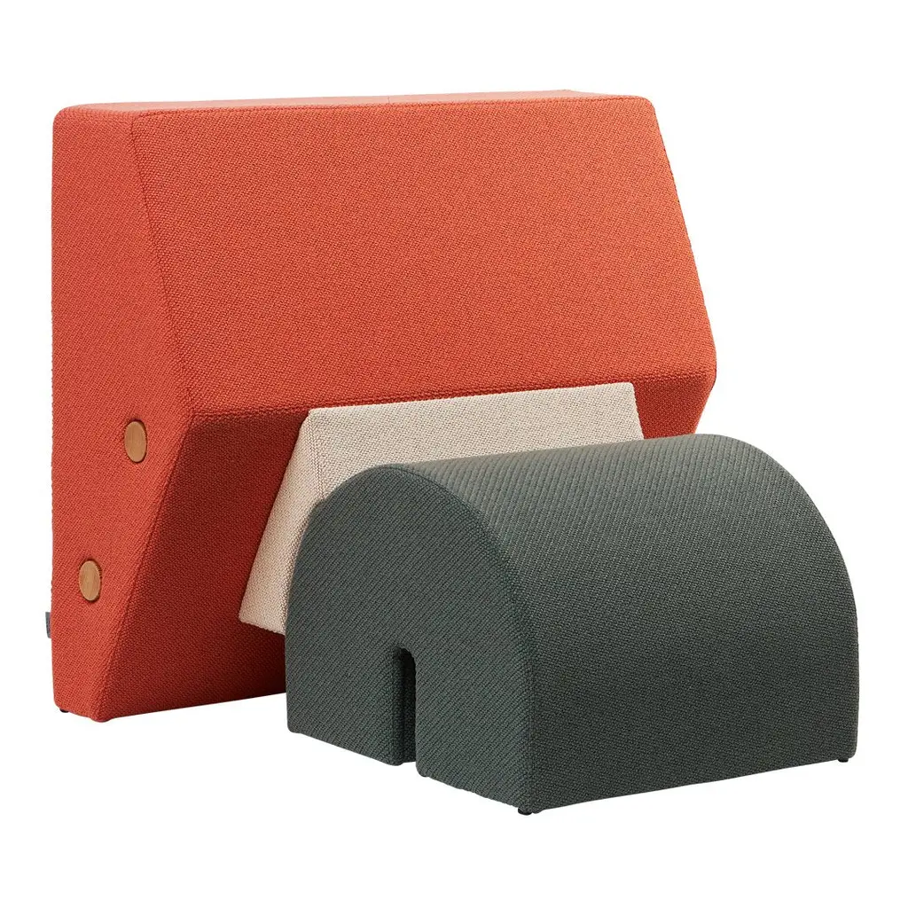 The KEYSTONE lounge chair is inspired by the three basic elements of a roman bridge, the spanners, the elemental building blocks, and the keystone, which when inserted completes the fundamental arch shape. Originally made from concrete (back rest), rubber (keystone) and ceramics (sit surface). This version of the KEYSTONE lounge chair is upholstered with textiles from the Kvadrat collection and produced by PLEASE WAIT to be SEATED.