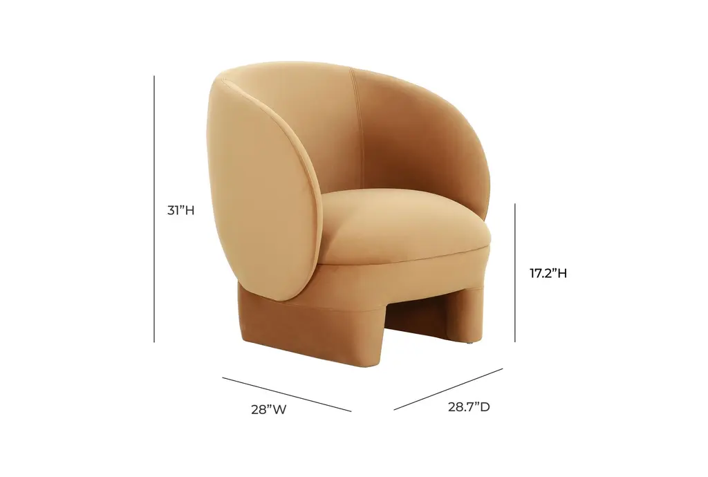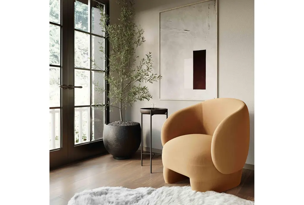 Kiki Cognac Brown Velvet Fabric Accent Arm Chair
