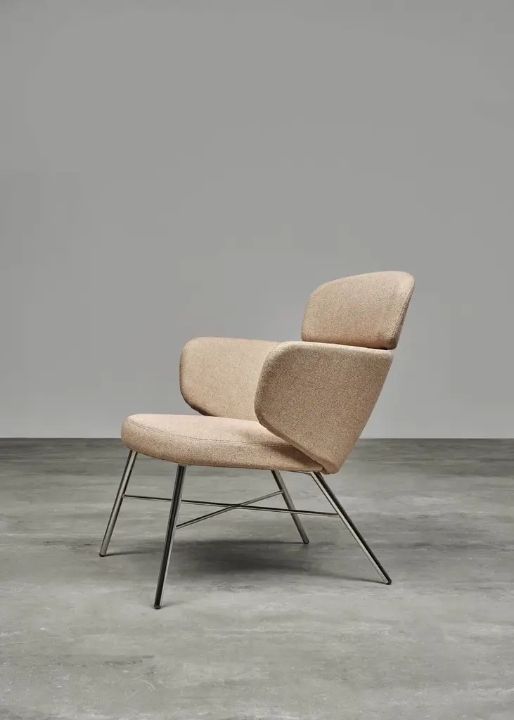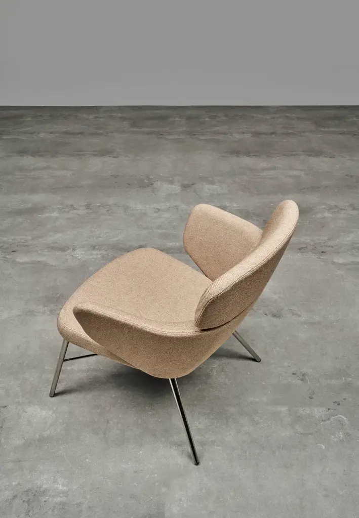 The Kin seat takes inspiration from the Japanese Kintsugi technique, which tends to highlight the value of breakages rather than seeking to conceal them. Reflecting the Japanese tradition, designers Radice and Orlandini have taken the different parts of the frame and put them together in an unprecedented visual solution that conveys a sense of seemingly unstable balance. The load-bearing structure is hidden from view and the deceptive contrast between the parts can be emphasized with different materials and finishes. The lounge armchair declines the concept offering more comfort.Armchair with structure made of RAL 9005 matt black or metallic silver epoxy powder coated or chrome steel tubes. Flexible polyurethane backrest, cold processed without CFC.
