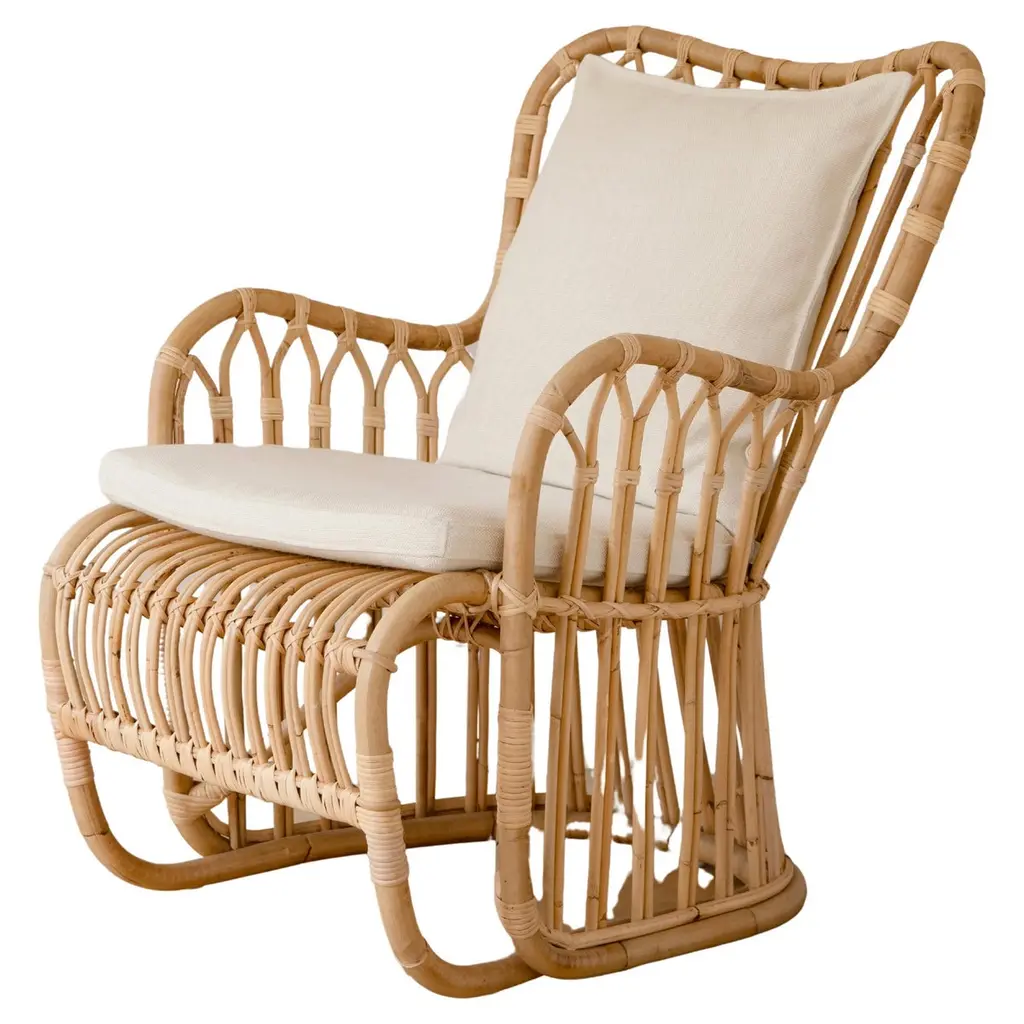 An elegant and strong design icon, brought back to life for the modern home. The Kindt Larsen Tulip Rattan Chair by Sika Design was originally designed in the 1940s by Tove Kindt Larsen. The timelessness of its generous curves and hand-crafted Indonesian rattan makes this lounge chair suitable for any modern interior, especially one that leans Mid-Century Modern, bohemian or tropical. And, while obviously appealing visually, the curves also hug the chair’s occupant and ensure the ultimate comfort for long-term lounging.