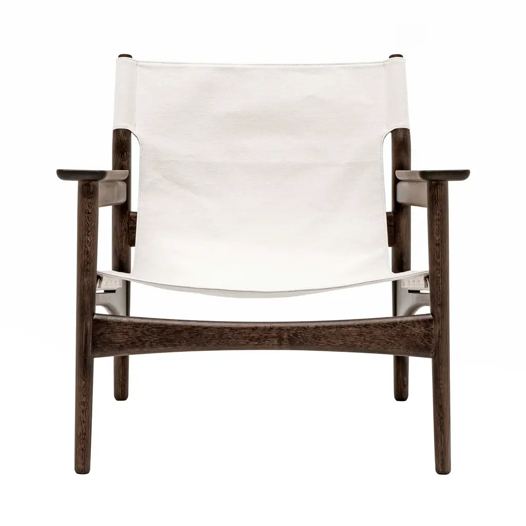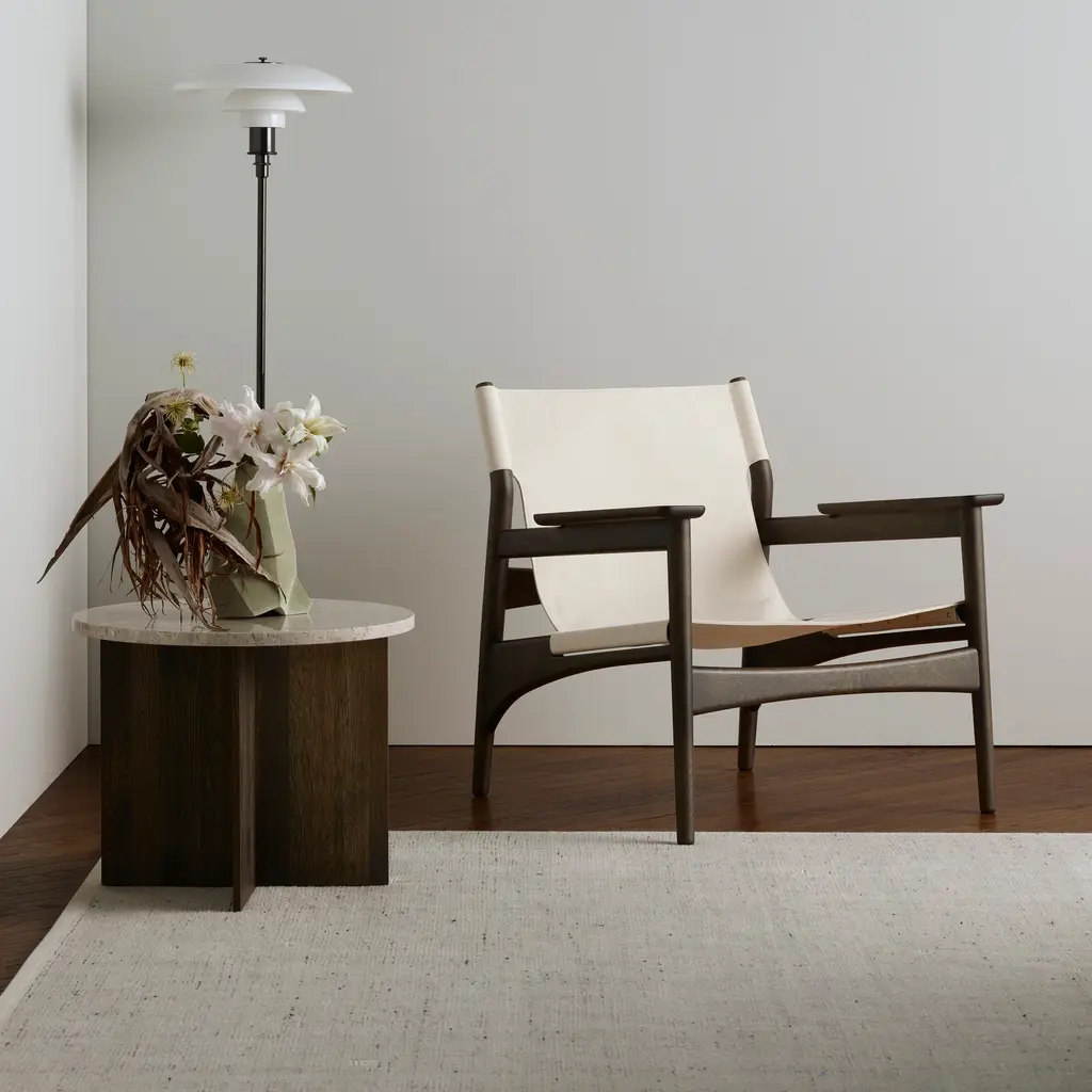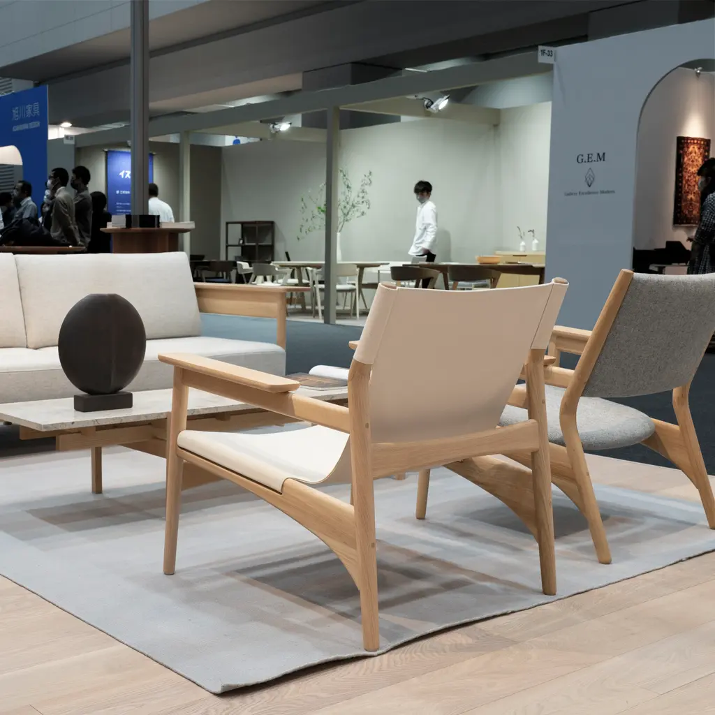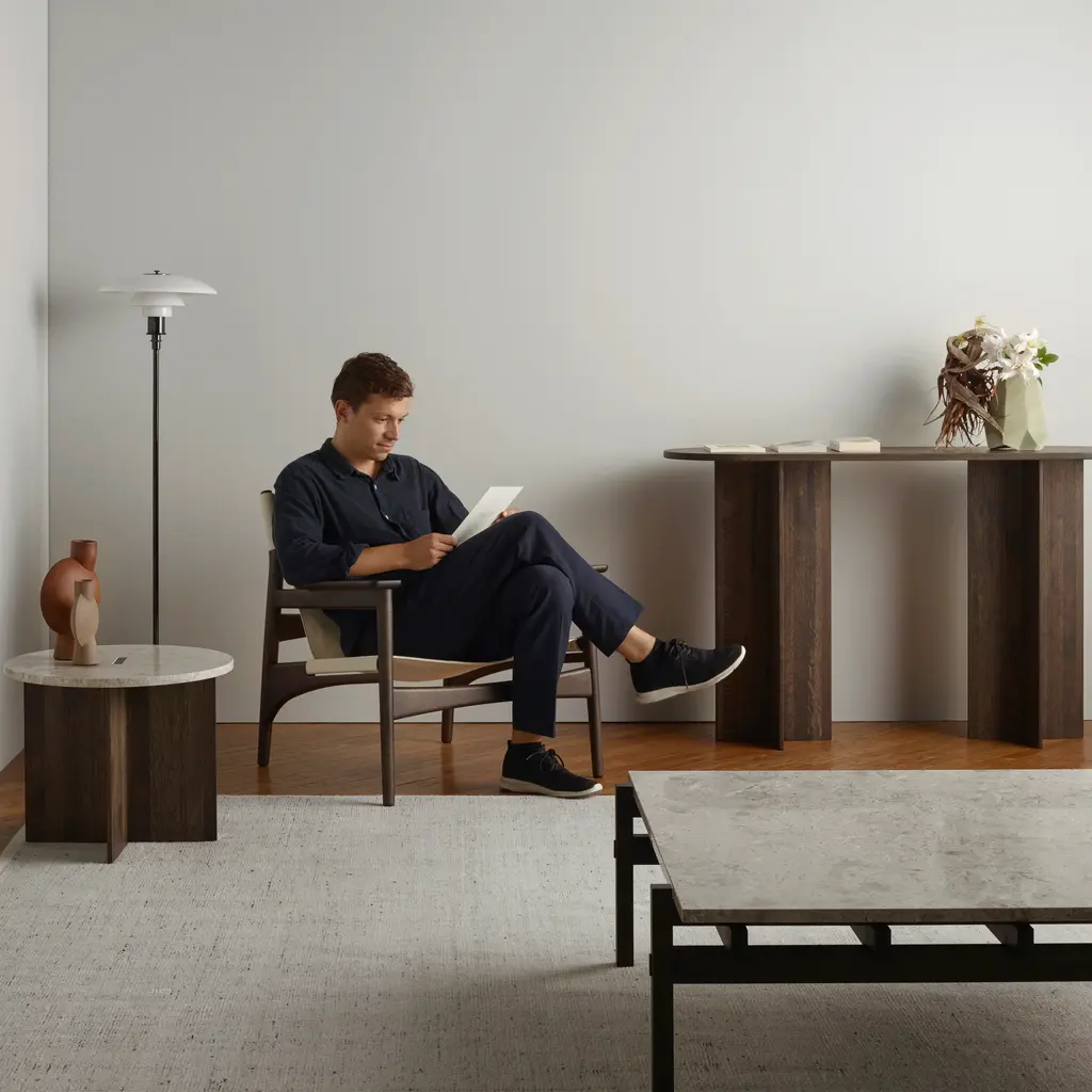 This version of Kinuta has the same basic construction as its upholstered relative N-LC01, but with a free-hanging seat in either leather or canvas that comfortably conforms to the shape of the sitter. Inspired by its namesake Tokyo’s ‘80s-era apartments with an open-air courtyard, the seating concept also references traditional safari chairs. With Karimoku Case's exceptional craftsmanship at its heart, the solid-oak frame also features a sleek angled backrest and the series' comfortably wide armrests.