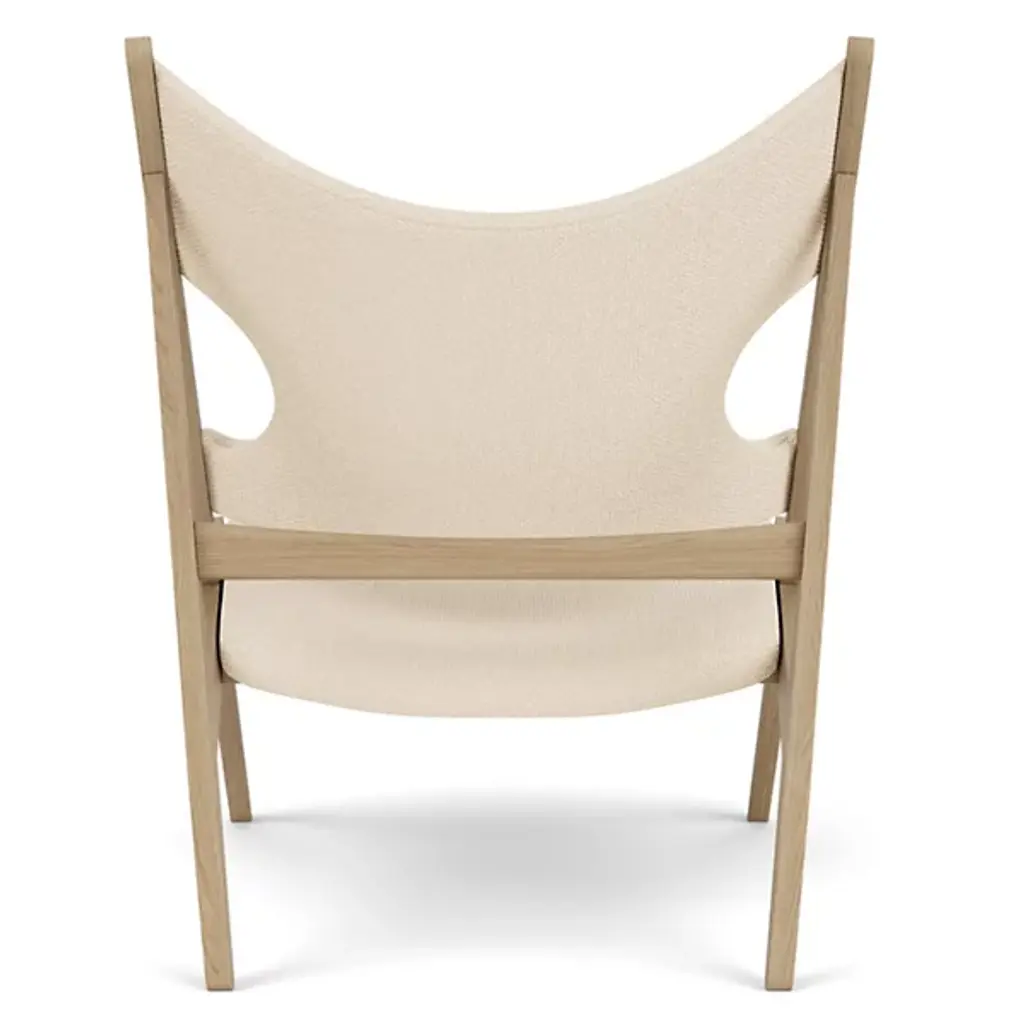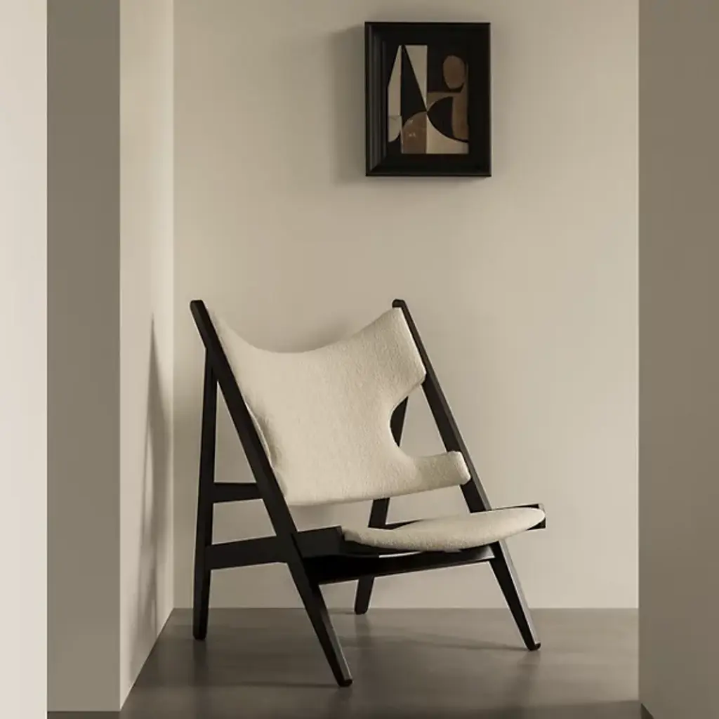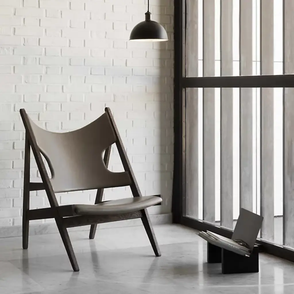 For all the beautiful works celebrated architect and designer Ib Kofod-Larsen created, all were crafted with daily use in mind, never compromising on comfort and practicality. The Knitting Lounge Chair from Audo Copenhagen, formerly known as Menu, is a classic piece whose original purpose as an ideal knitting chair rings true today, functioning also as the perfect reading or web browsing chair. Natural wood angles and moves like a gorgeous modern sculpture. An arching backrest brings together the wood framework with a soft, cut-out design. The cut-outs make comfortable resting points for the peak of your elbows, making the holding or knitting by your hands as comfortable and sophisticated as possible.