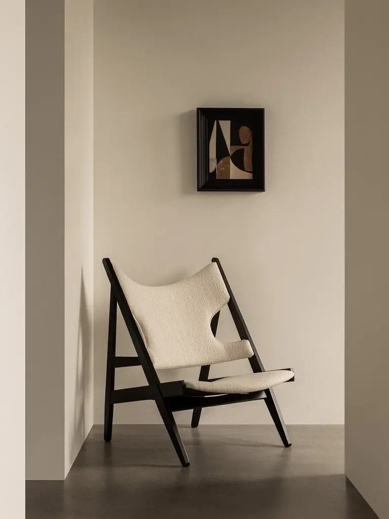 The Knitting Chair is beautiful from every angle, making it easy to place anywhere in a room. Given the chair’s enveloping comfort, it has a relatively small footprint, which makes it an easy fit in compact interiors as well as in more spacious ones. The design also stands out on comfort – the result of Kofod-Larsen’s constant care to ensure ideal angles and lumbar support. The clean, sculptural lines – achieved through the designer’s close work with joiners – and the high-end, natural materials make for an unforgettable, conversation-sparking silhouette.