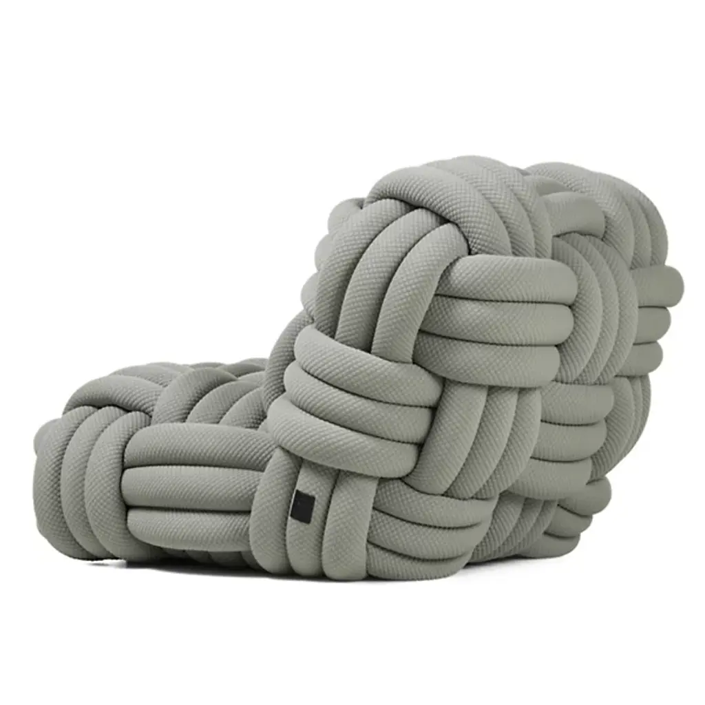 The Knitty Upholstered Lounge Chair from Moooi is a spectacular work of art designed by Nika Zupanc, who crafts this piece to resemble yarn as well as amply-sized ropes featured on seafaring ships. This exquisite lounge chair exudes avant-garde sensibilities. It is defined by its fine fabric, which takes on a woven appearance that draws your gaze. Knitty combines wood and steel to form a durable framework, which, in addition to creating visual intrigue, provides postural support as you sit. Your upholstered lounge chair is filled with foam for maximum comfort. Wherever it is placed, Knitty will be an engaging topic of conversation.