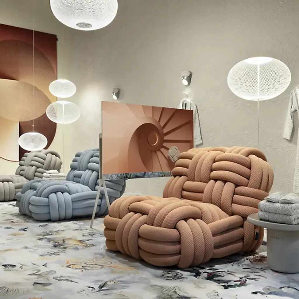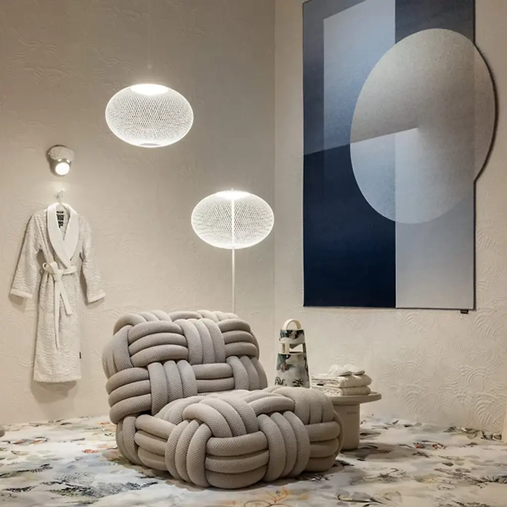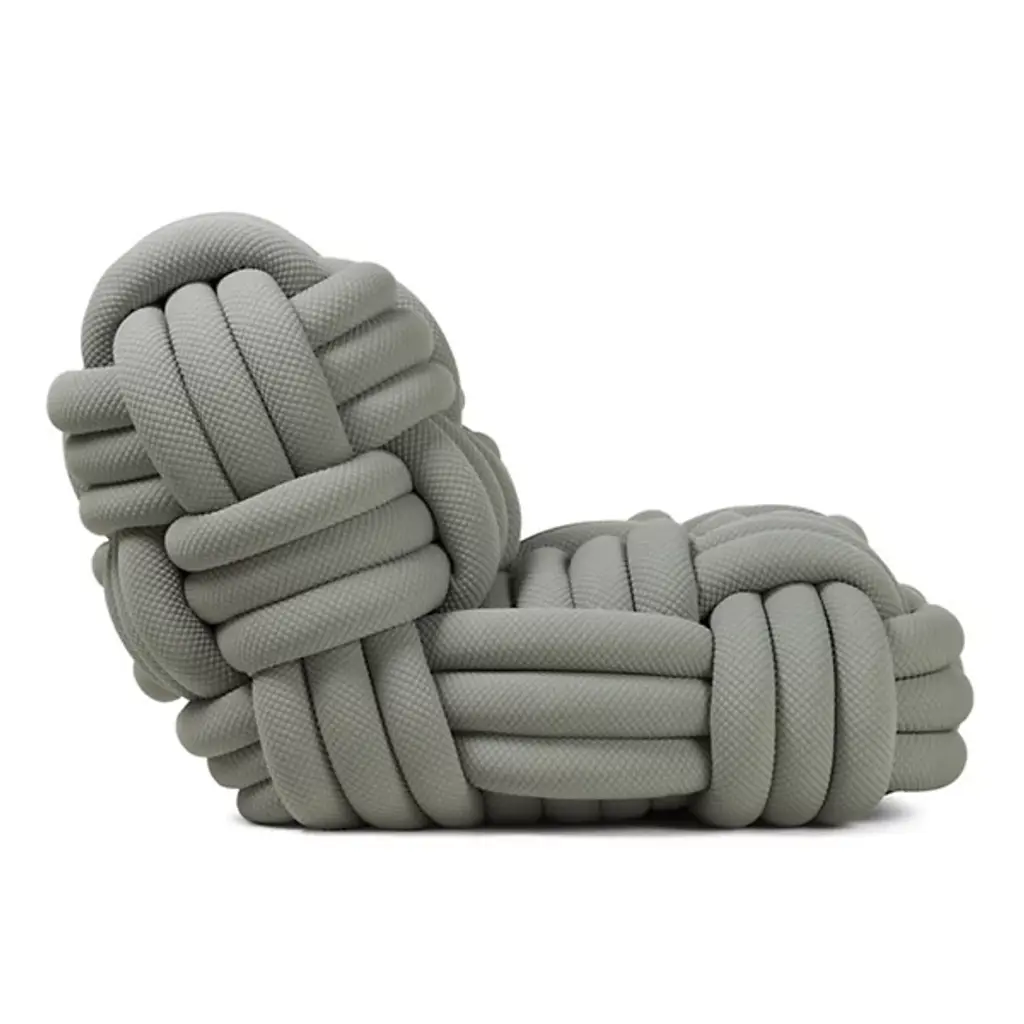 The Knitty Upholstered Lounge Chair from Moooi is a spectacular work of art designed by Nika Zupanc, who crafts this piece to resemble yarn as well as amply-sized ropes featured on seafaring ships. This exquisite lounge chair exudes avant-garde sensibilities. It is defined by its fine fabric, which takes on a woven appearance that draws your gaze. Knitty combines wood and steel to form a durable framework, which, in addition to creating visual intrigue, provides postural support as you sit. Your upholstered lounge chair is filled with foam for maximum comfort. Wherever it is placed, Knitty will be an engaging topic of conversation.