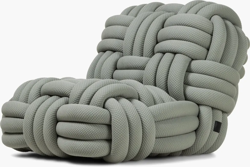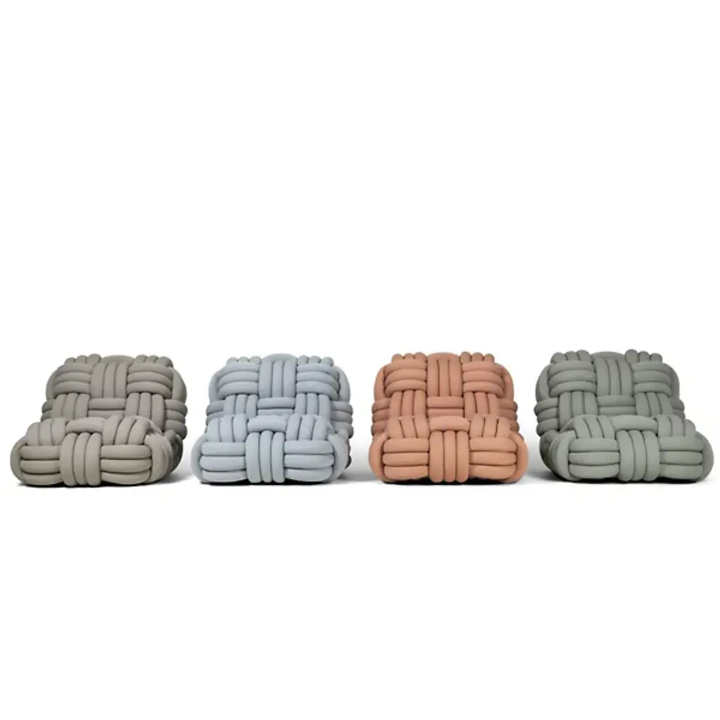 The Knitty Upholstered Lounge Chair from Moooi is a spectacular work of art designed by Nika Zupanc, who crafts this piece to resemble yarn as well as amply-sized ropes featured on seafaring ships. This exquisite lounge chair exudes avant-garde sensibilities. It is defined by its fine fabric, which takes on a woven appearance that draws your gaze. Knitty combines wood and steel to form a durable framework, which, in addition to creating visual intrigue, provides postural support as you sit. Your upholstered lounge chair is filled with foam for maximum comfort. Wherever it is placed, Knitty will be an engaging topic of conversation.