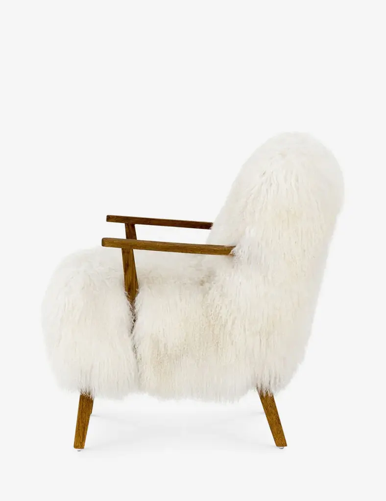 A fun and whimsical piece, the Kora Chair is upholstered in a shaggy Mongolian fur, bringing both a luxurious look and amazing texture to your space.