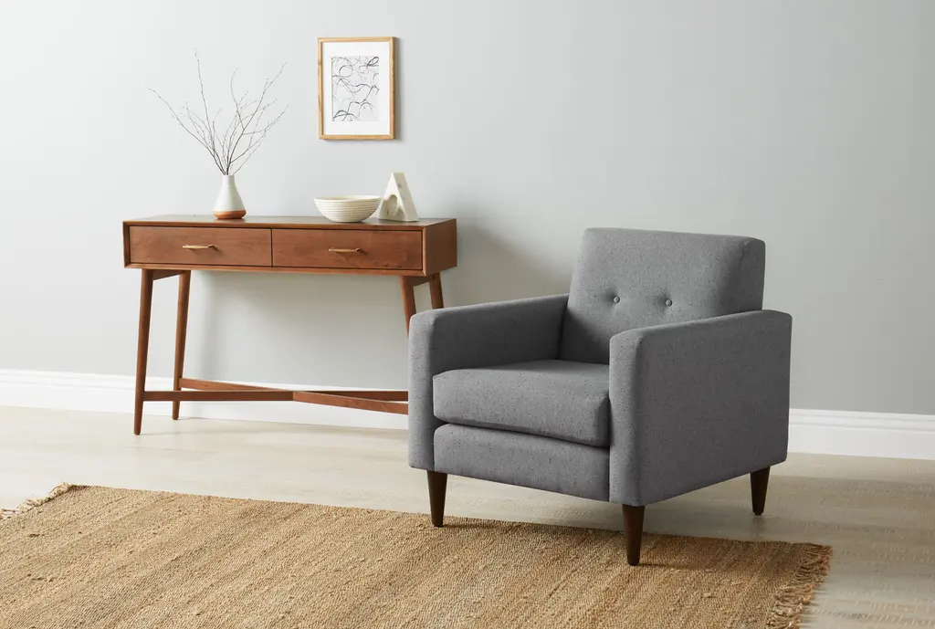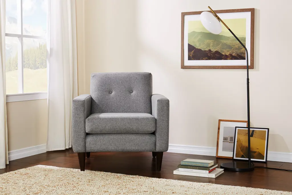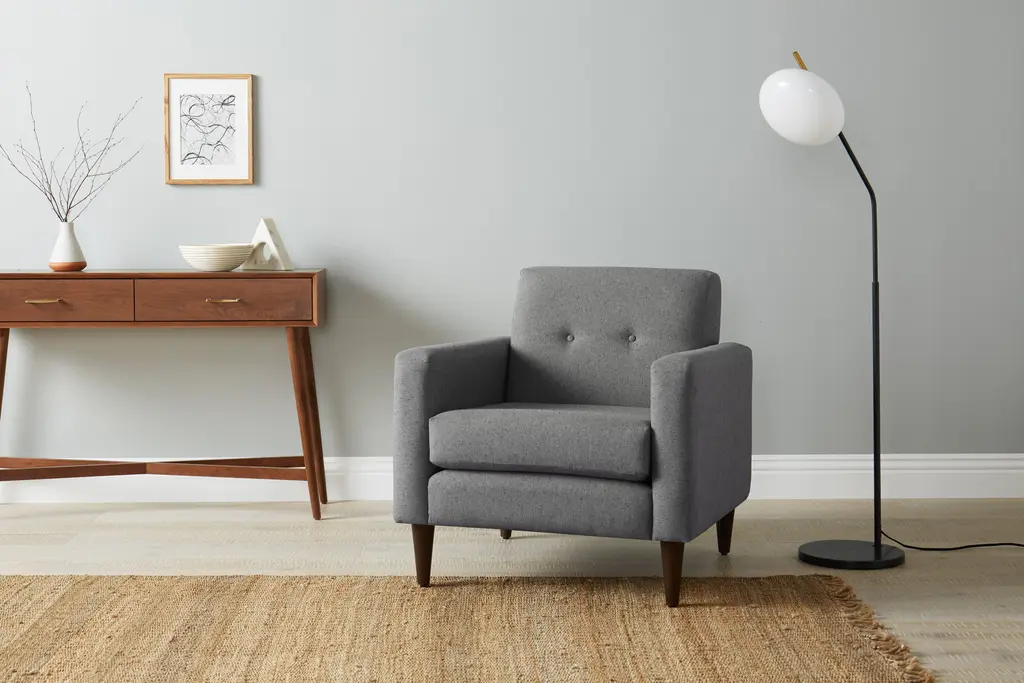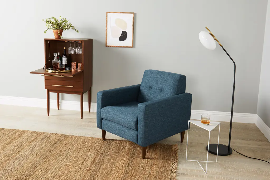 A Mid-Century standout for limited spaces, the Korver Apartment Chair delivers a pop of retro elegance with its chic button tufting and versatile frame. Envisioned as a bold statement for smaller rooms, the Korver balances vintage charm with an easygoing feel to refine the way you lounge. Make the most of every square inch with its structured frame, ultra deep seating, and sophisticated button tufting.