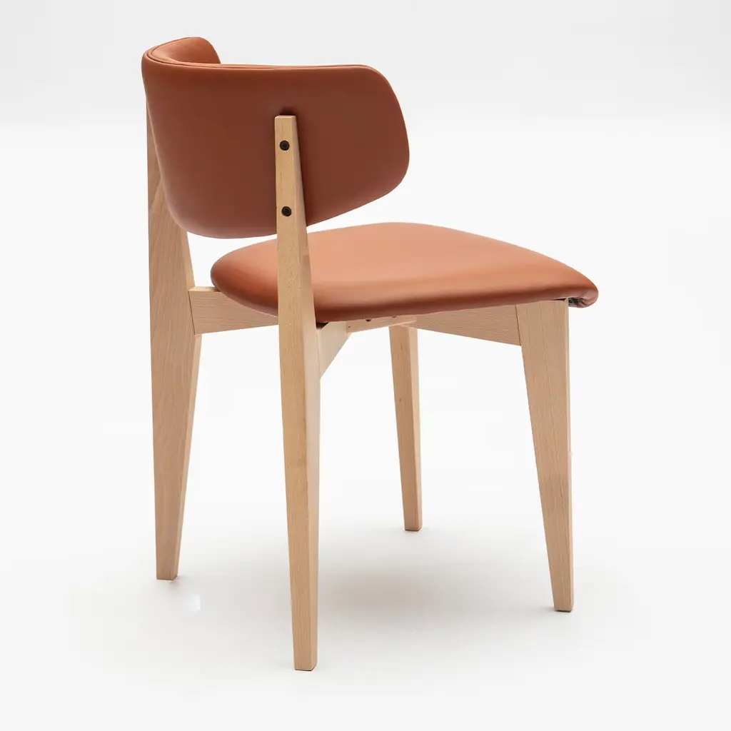 Defined by rounded and soft lines, this elegant chair will make a refined and stately addition to any modern interior. Resting on a beechwood frame marked by an exquisite natural finish, the ergonomic seat and open backrest are superbly upholstered in orange-colored leather for a balanced contrast. Please ask the Concierge for customization options.