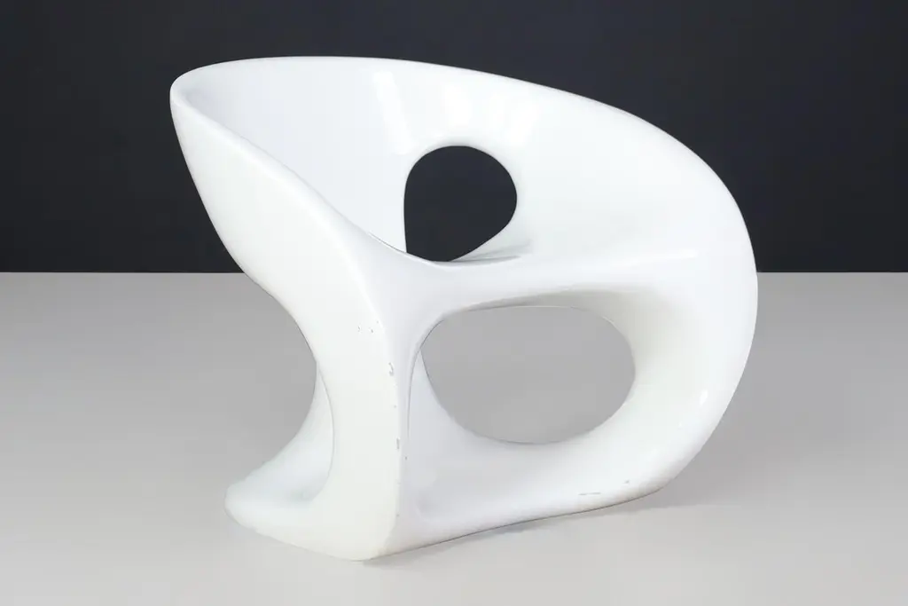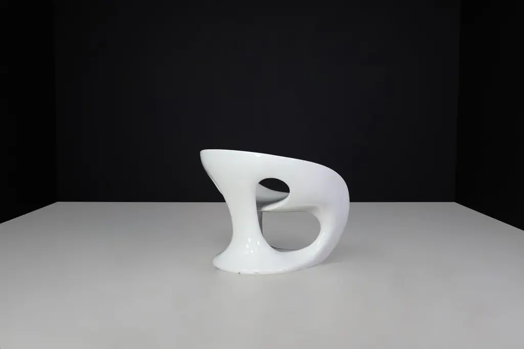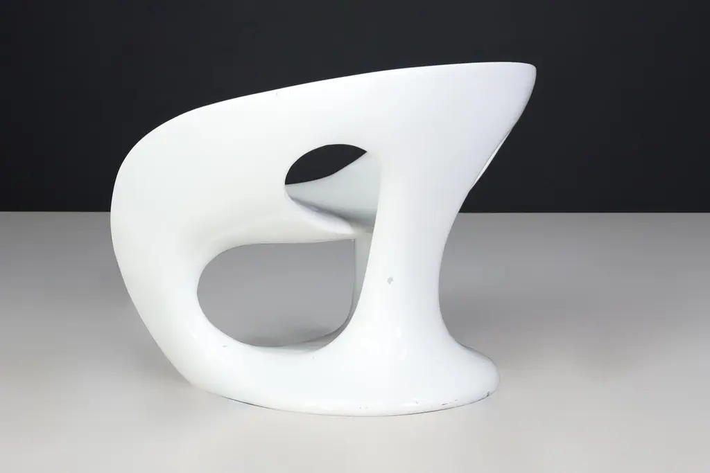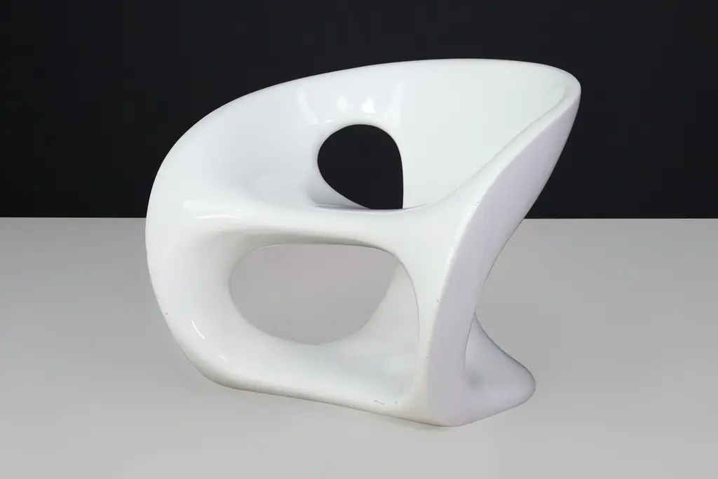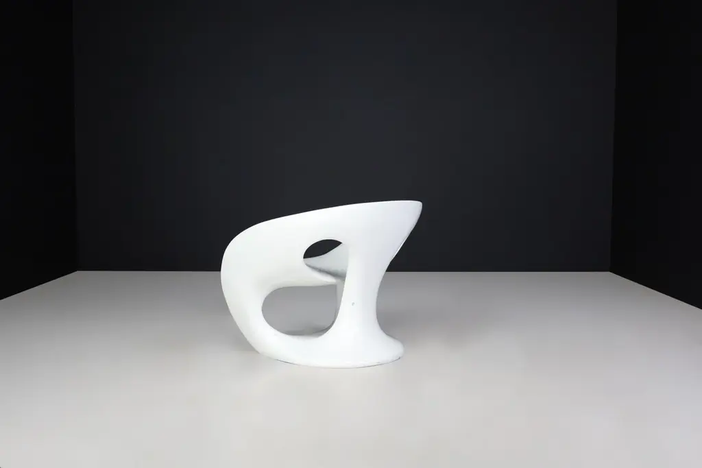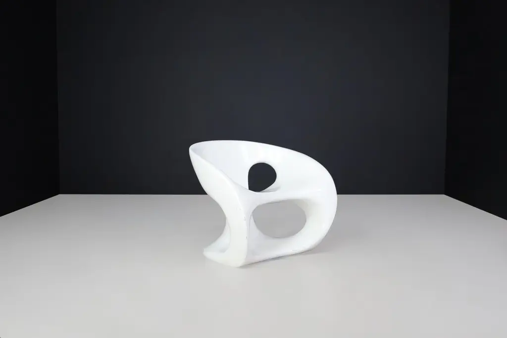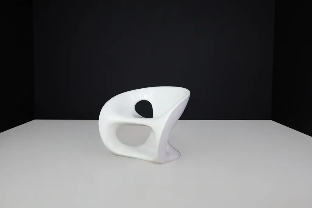 Kundalini Hara White Lacquered Fiberglass Outdoor Sculptural Chairs By Gurioli.