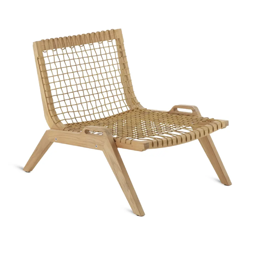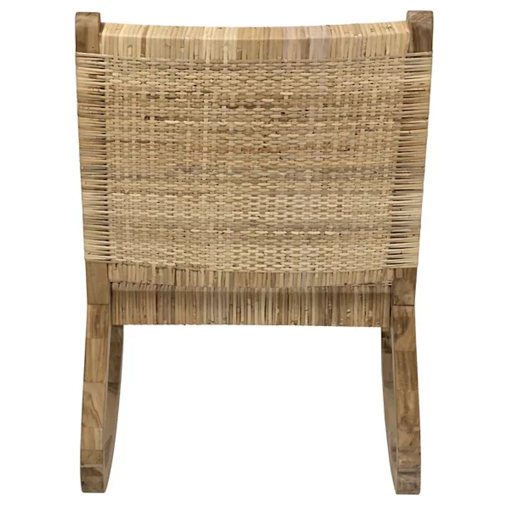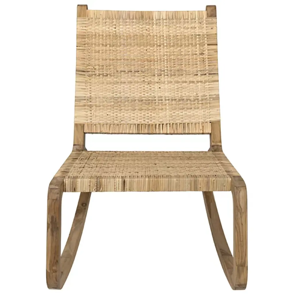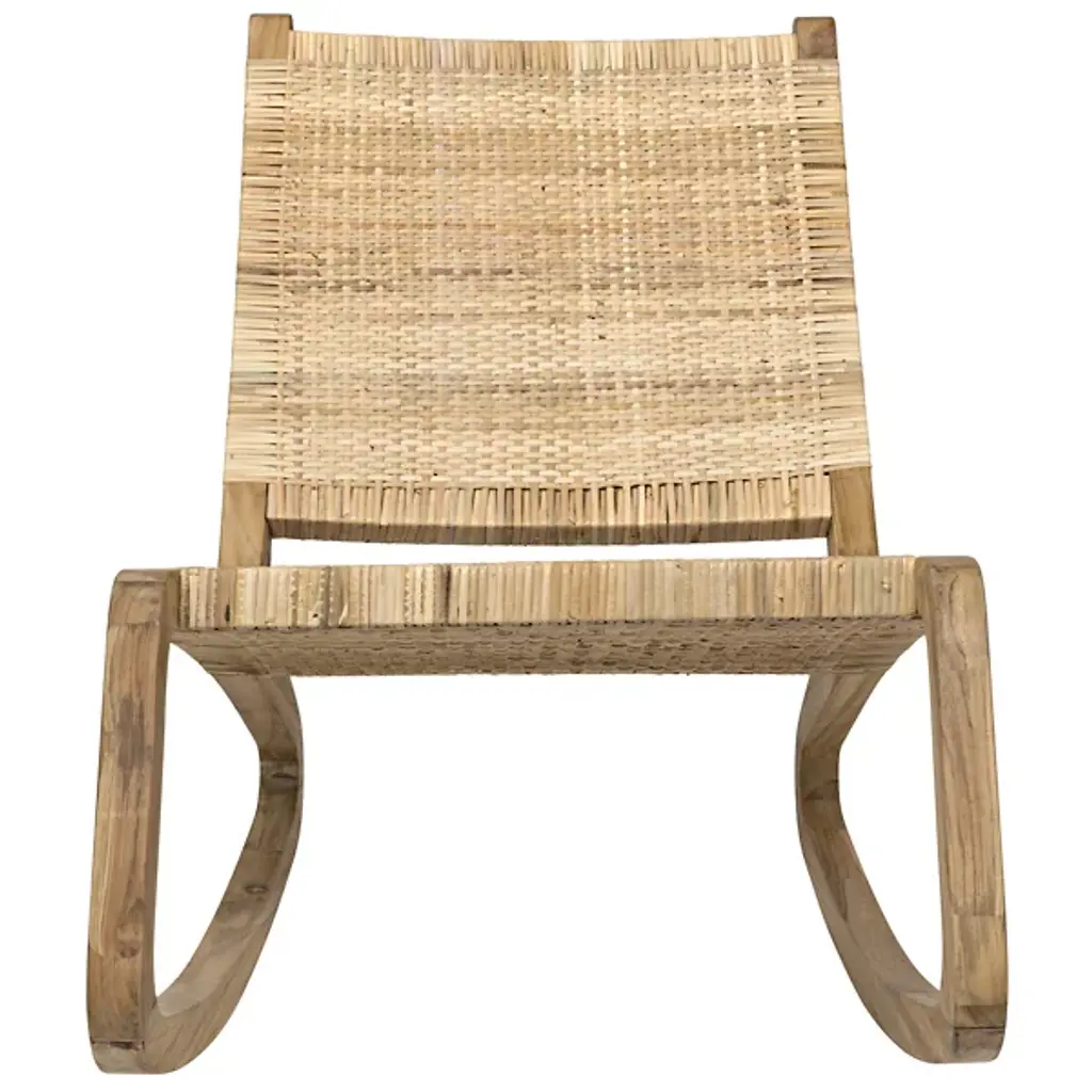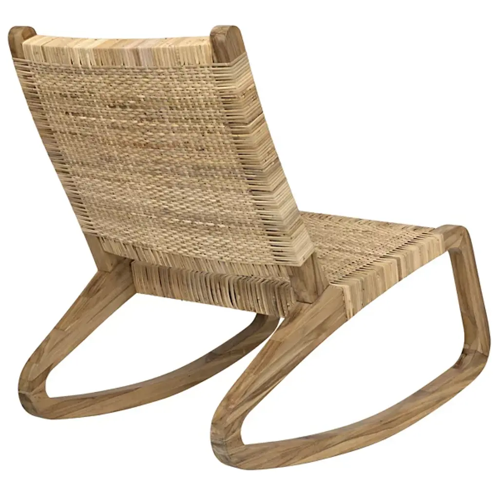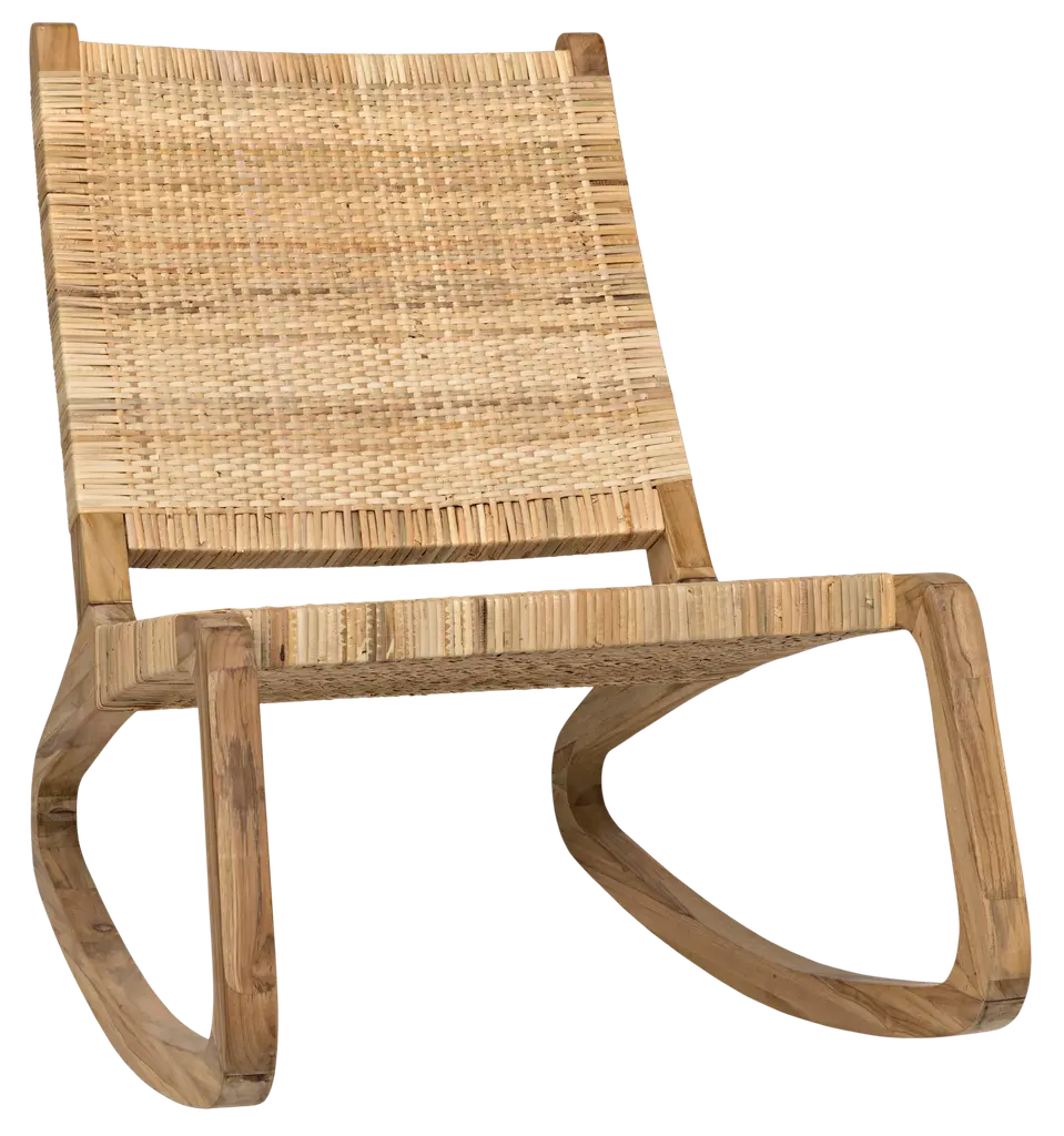 The Las Palmas Lounge Chair from Noir combines naturally finished teak with peeled rattan in a rocking design that spans generational appeal. The handcrafted construction showcases traditional weaving techniques where rattan strips create a supportive seat and backrest surface. Teak's natural oils provide inherent weather resistance, making this rocker suitable for covered porches, sunrooms, or indoor living spaces where you want to introduce organic textures. The gentle rocking motion encourages relaxation, while the woven surface allows air circulation, creating comfortable seating for extended periods of use.