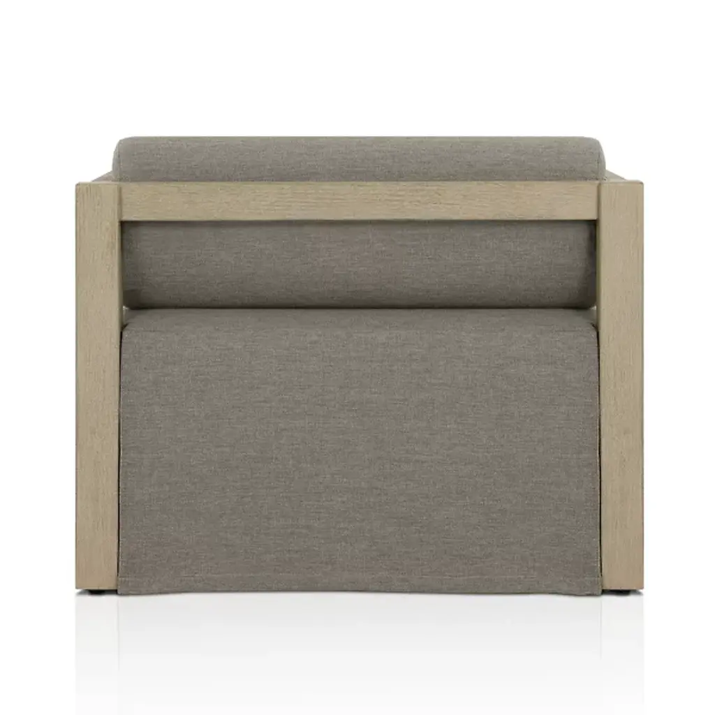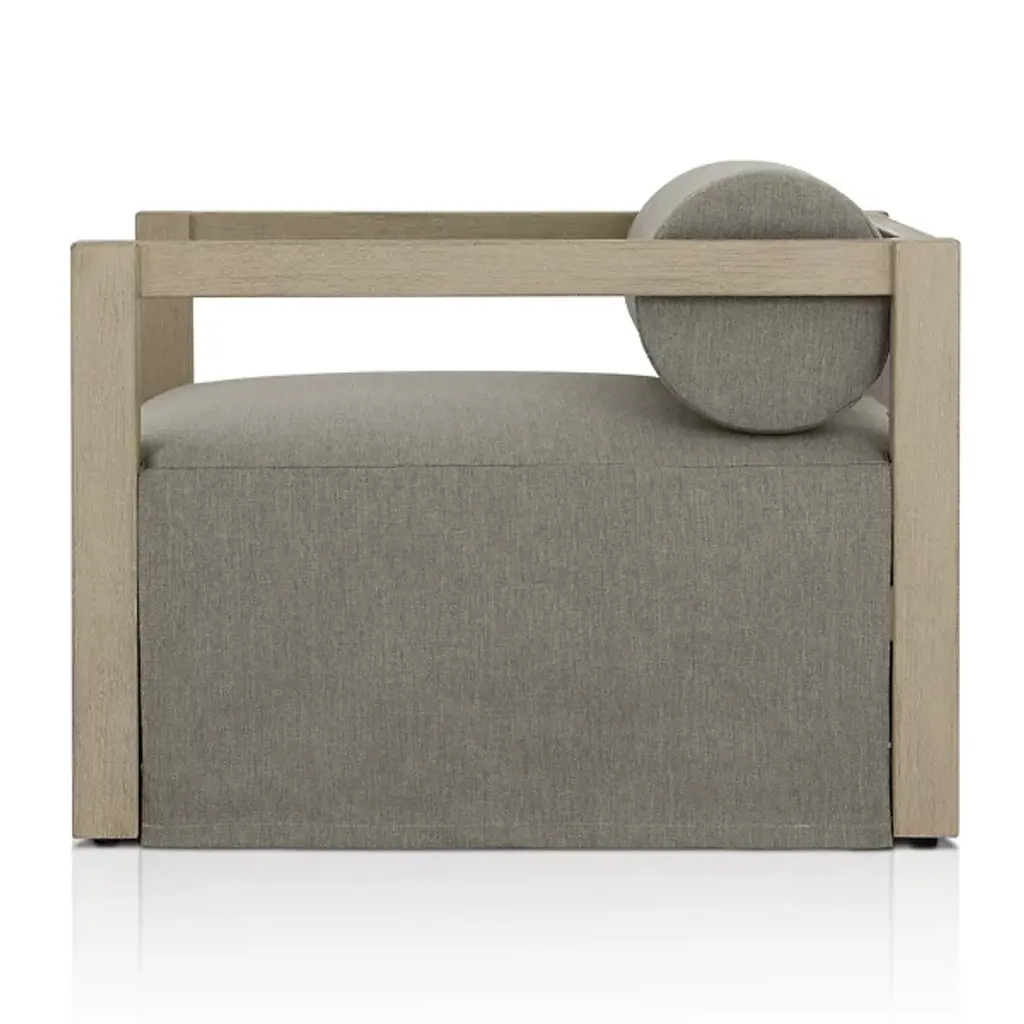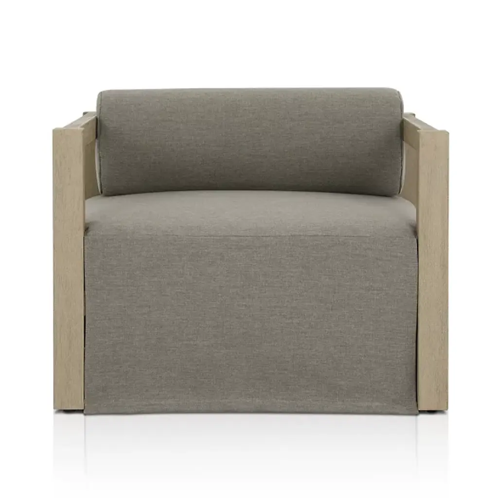 Revamp your outdoor space with the Laskin Outdoor Lounge Chair from Four Hands, a captivating addition designed with intentionally contrasting shapes. Laskin beautifully merges a linear seat with a cylindrical cushion crafted from 100% polypropylene. Laskin promises comfort and durability. Its solid teak frame is responsibly sourced, reflecting our commitment to ethical material practices. It lets contemporary aesthetics and a dedication to sustainability come together to create a comfortable outdoor seat.
