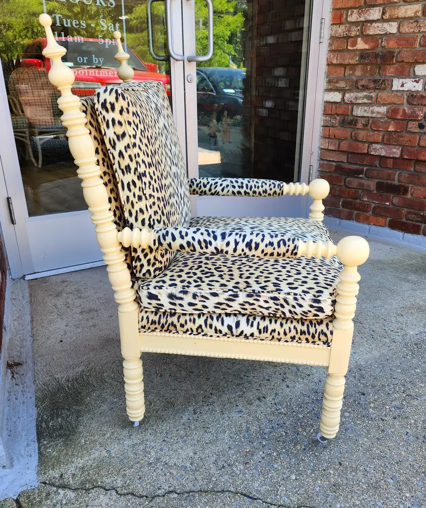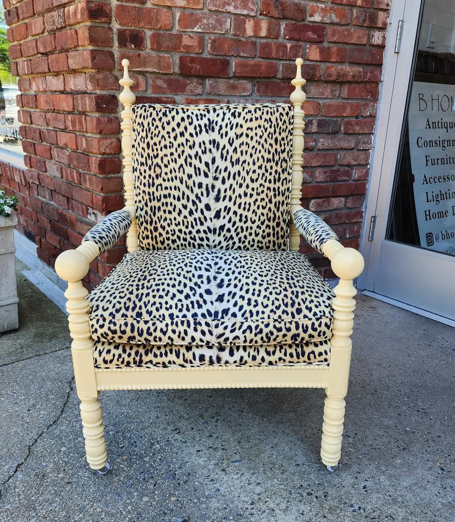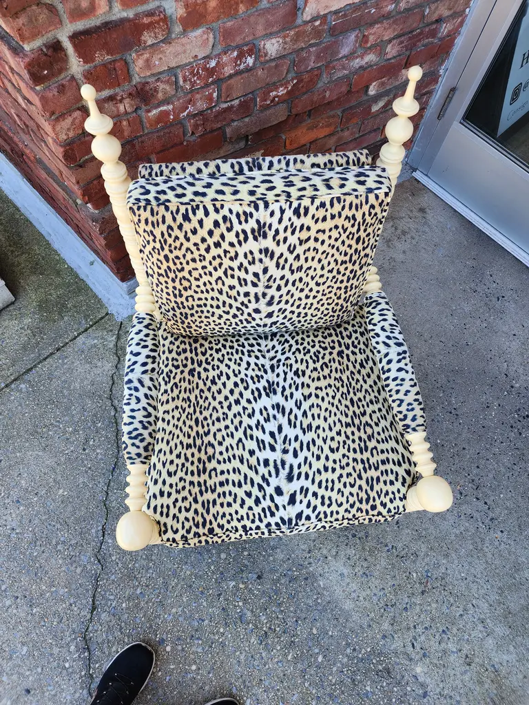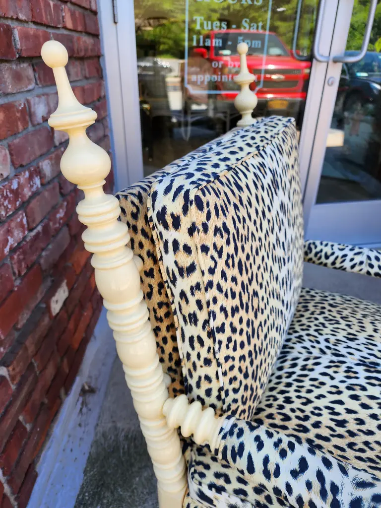 Late 20th Century Whimsical Lacquered Spindle Armchair Upholstered In Panthere De Somalie By Pierre Frey