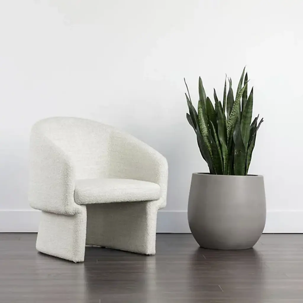 Sink into the sublime comfort of the Lauryn Lounge Chair from Sunpan, a masterpiece of mid-century modern design. Handcrafted in Vietnam, this sophisticated seating solution features an elegant barrel-back silhouette that gracefully cradles you in plush polyester-sheathed upholstery. The sturdy pinewood frame provides enduring support while maintaining a light, airy aesthetic. Whether gracing your living room, private lounge, or welcoming lobby, this contemporary chair artfully balances style and comfort to create an inspired seating experience.