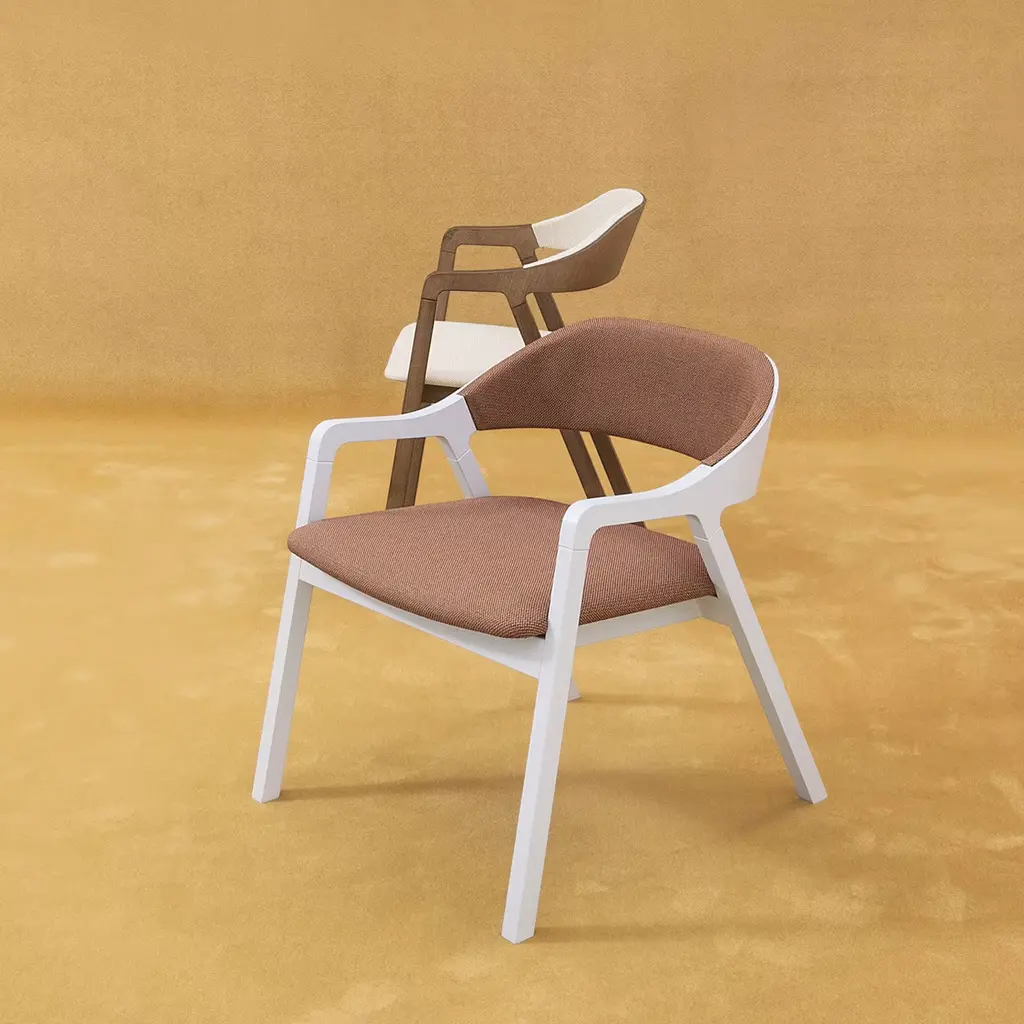 Designed by Michael Geldmacher in 2018, the Layer Chair is characterized by its legs, inspired by an open compass. Featuring smooth transitions between materials and parts, the Layer Chair was designed for fresh, new spaces. A complementary lounge chair is also available.