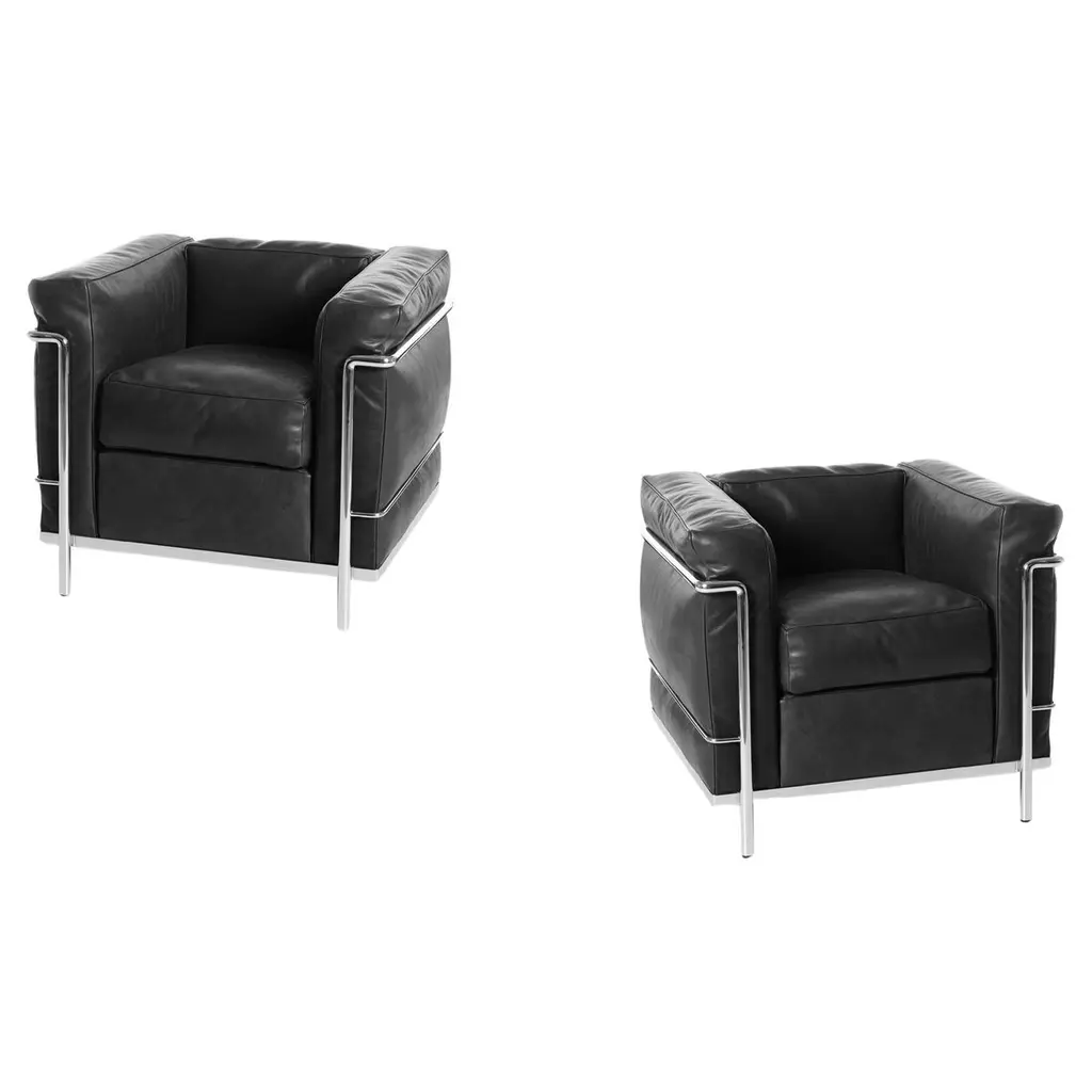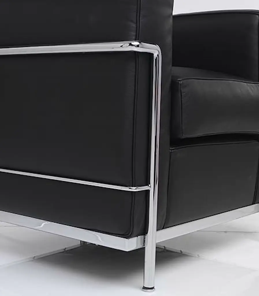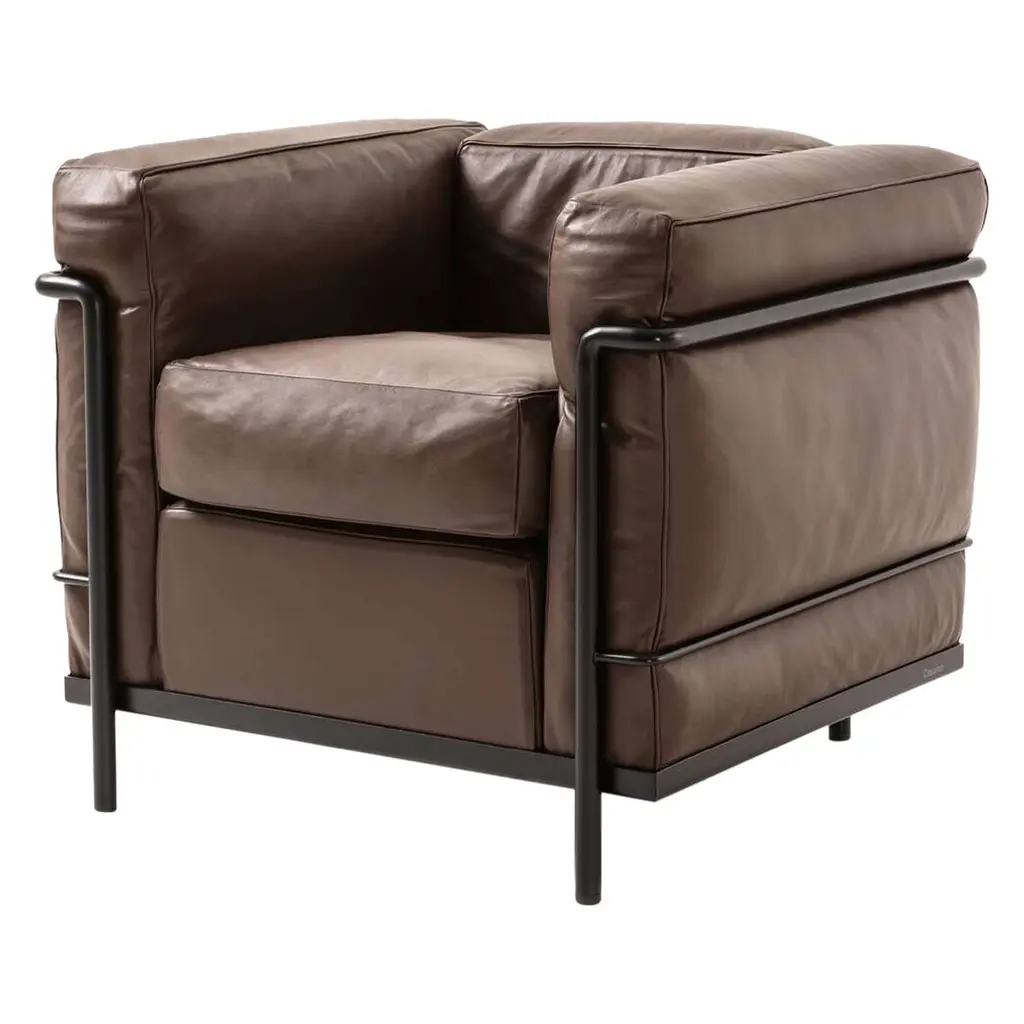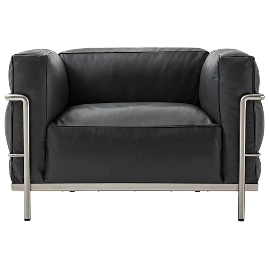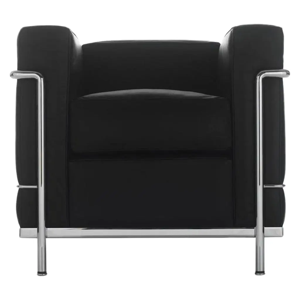 The LC2 Collection (1928) reverses the standard structure of sofas and chairs. External steel frames cradle thick, resilient cushions, integrating padded comfort with International Style functionality. The simple tubular structure is remarkably relevant to how we live today, over 90 years later. Each piece is signed, numbered, and as a product of Cassina's Masters Collection manufactured by Cassina under exclusive worldwide license from the Le Corbusier Foundation. Made in Italy.