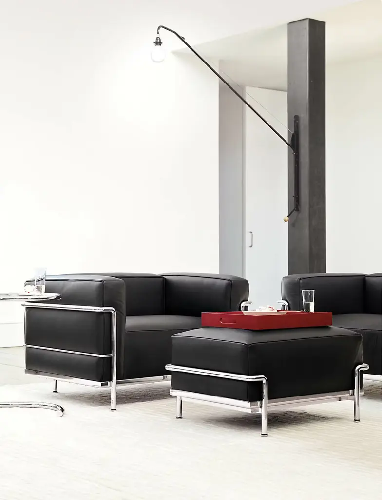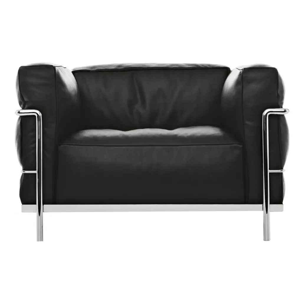 The LC3 Collection (1928) reverses the standard structure of sofas and chairs. External steel frames cradle thick, resilient cushions, integrating padded comfort with International Style functionality. The simple tubular structure is remarkably relevant to how we live today, almost 90 years later. Each piece is signed, numbered, and as a product of Cassina's Masters Collection manufactured by Cassina under exclusive worldwide license from the Le Corbusier Foundation. Made in Italy.