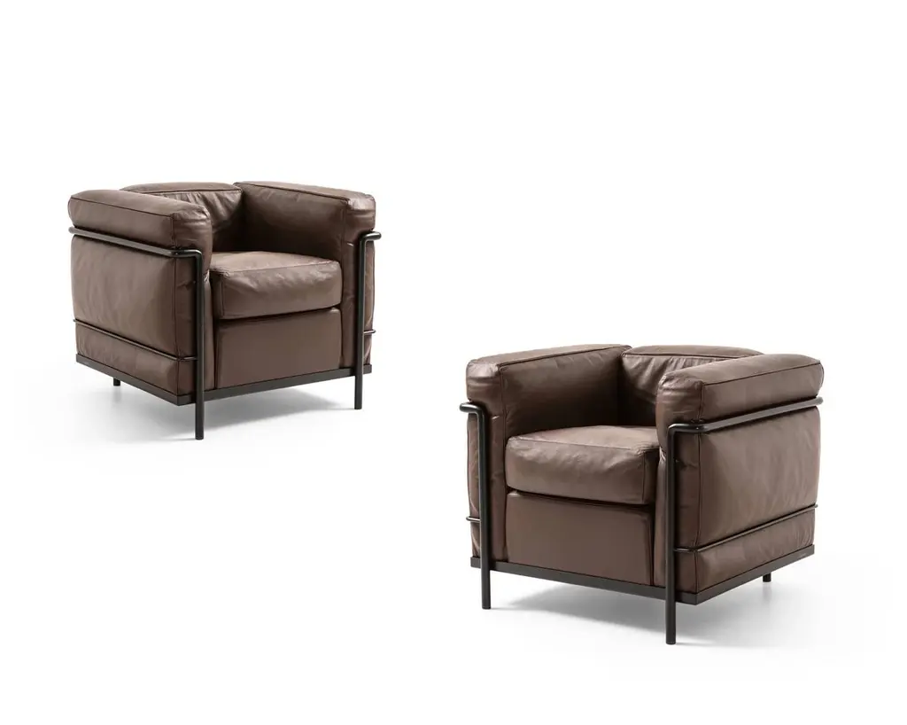 Le Corbusier Set Of Two Fauteuil Grand Confort, Petit Modèle Armchairs A timeless style that has written its own chapter in design history, becoming an icon of global fame. Perfect today in any residential or contract setting.Designed for ease of conversation, the armchair was exhibited in 1929 at the Salon d’Automne in Paris as the archetype of the modern concept in furnishings, interpreted by its authors as “household equipment”.The separation between the metal structure and the cushions is consistent with the principles of Rationalism, just as the separation between the parts is based on an industrial approach to production, reminiscent of the architectural relationship between the loadbearing structure and the in-fill elements.CUSHION PADDINGVariable density polyurethane foam. Resin-treated polyester fibre batting laminated to fabric lining.STRUCTUREFrame in tubular steel. Polished chrome or painted.UPHOLSTERYFabric or leatherA timeless style that has written its own chapter in design history, becoming an icon of global fame. Designed for ease of conversation, the armchair was exhibited at the Salon d’Automne [Autumn Salon] in Paris in 1929 as the archetype of the modern concept of furnishings, interpreted by its authors as “household equipment”. The separation between the metal structure and the cushions is consistent with the principles of Rationalism, just as the separation between the parts is based on an industrial approach to production, reminiscent of the architectural relationship between the loadbearing structure and the in-fill elements.These models are also available in an eco-friendly version that stays true to the original design. Thanks to the study conducted by Cassina LAB, a partnership between the Cassina Research and Development Center and the Poli.design consortium of the Politecnico University in Milan, the foam-fill parts, the padding in the cushions and the tubular structure are produced with sustainable materials and processes.Important information regarding images of products:Please note that some of the images show other colors and variations of the model, these images are only to present interior design proposals. The item that is selling is on the first image.Important information regarding color(s) of products:Actual colors may vary. This is due to the fact that every computer monitor, laptop, tablet and phone screen has a different capability to display colors and that everyone sees these colors differently. We try to edit our photos to show all of our products as life-like as possible, but please understand the actual color may vary slightly from your monitorAbout The Designer: In 1922, Le Corbusier began working in the new rue de Sèvres, Paris, atelier with his cousin Pierre Jeanneret with whom he shared research projects and design criteria in a profound and life-long professional relationship.In October 1927, the pair decided to draw on the contribution of a young architect who had already begun to establish a reputation on the architectural scene of the time: Charlotte Perriand. Their collaboration lasted through to 1937 and was extremely fruitful, especially in the field of furniture design. The partnership was highly significant, both in terms of the cultural weight of their achievements and their professional successes.It was together with Charlotte Perriand that the pair tackled the innovative project for “l’équipement d'intérieur de l’habitation”. The resulting designs were of great intellectual value and considerable commercial success. Thanks to Cassina’s ongoing production, there is continued interest in the conceptual contents of the work and the level of quality attained.Due to these characteristics, each item in the collection is eagerly awaited. About The Manufacturer: Established in 1927 by Cesare and Umberto Cassina in Meda, Italy, Cassina launched industrial design in Italy in the 1950s, based on a totally innovative approach that marked the transition from artisan production to mass production. With a mindset focused on research and innovation, Cassina combines technology and long-standing artisan craftsmanship. Memory, research, innovation. Cassina blends traditional skills and superior productivity, meticulous attention to detail and passion, uniqueness and experimentation, wellbeing and sustainability. Today, the company continues to address new lifestyles with the creation of complete, harmonious interior decor solutions that embody the best contemporary design for all areas of the home.