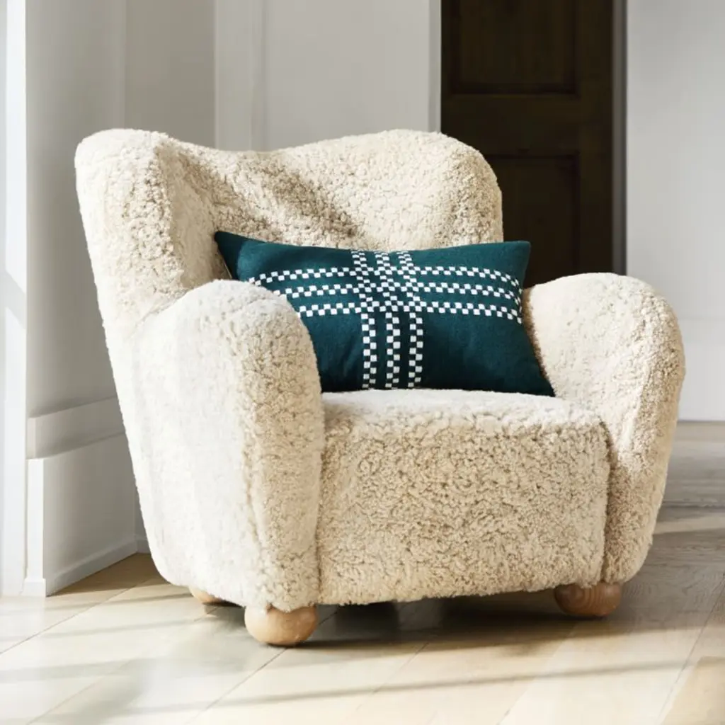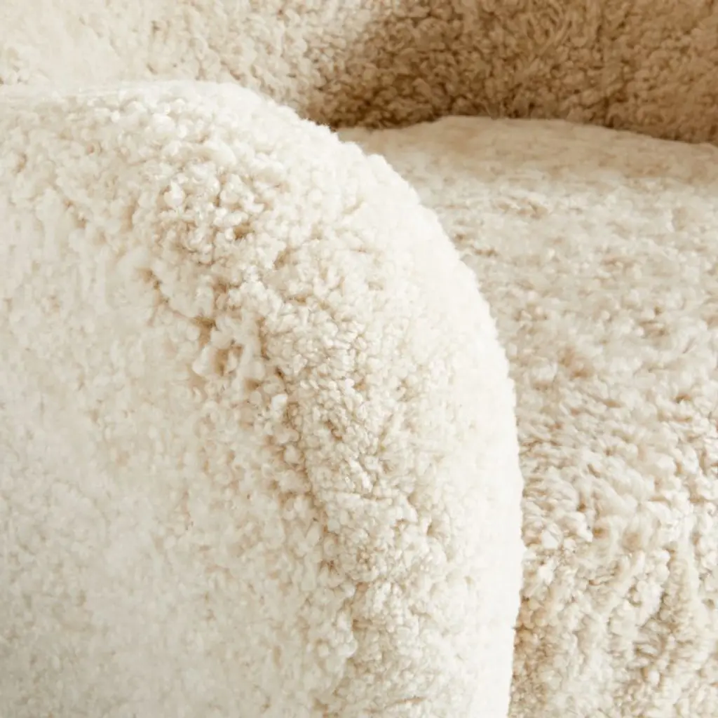 Neutral, tactile and perfectly petite for maximum snuggle, our cozy Le Tuco chair will become everyone's favorite place to cuddle. If the indulgent shearling upholstery weren't enough to make this chair extra special, we added charming bun-shaped wood feet and a jaunty slope to the arms. Tight cushioning, blind-clean seams and a few tucks of tufting on the back keep the look sophisticated yet fun.We've partnered with bestselling author, interior designer and EyeSwoon founder Athena Calderone to bring you a collection of designs for meaningful, beautiful modern living. Inspired by ancient forms and European finds, Crate x Athena fine-tunes scale, materials and comfort to fit seamlessly into your home.