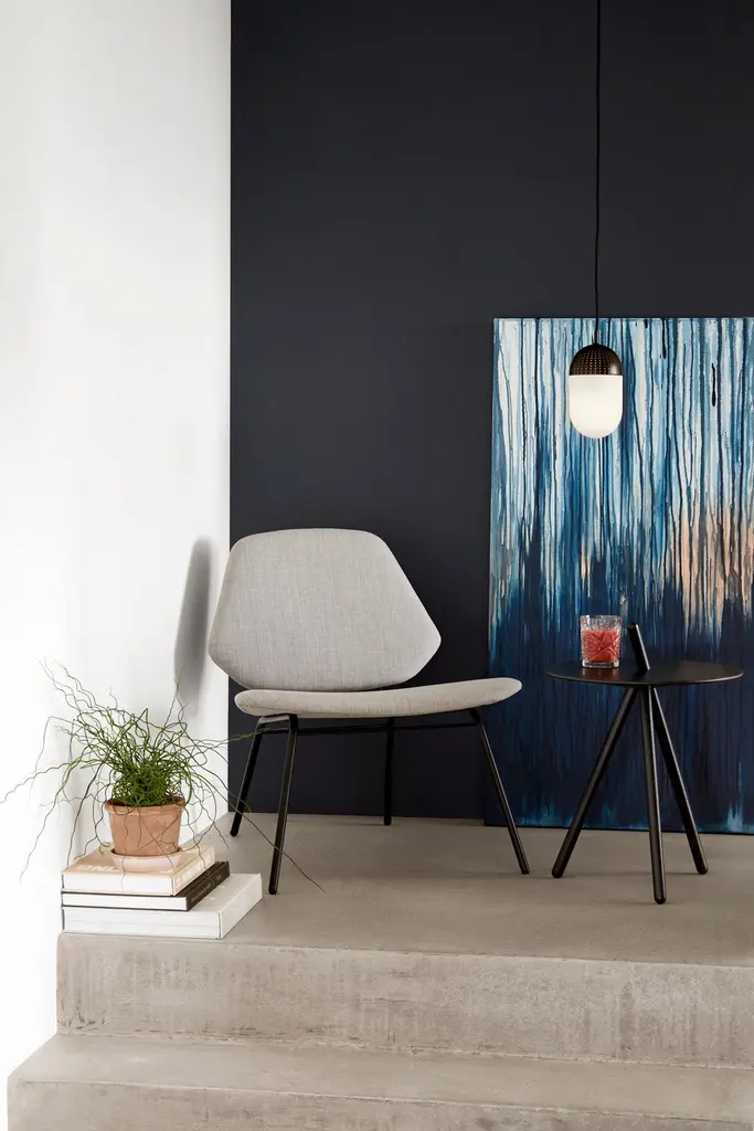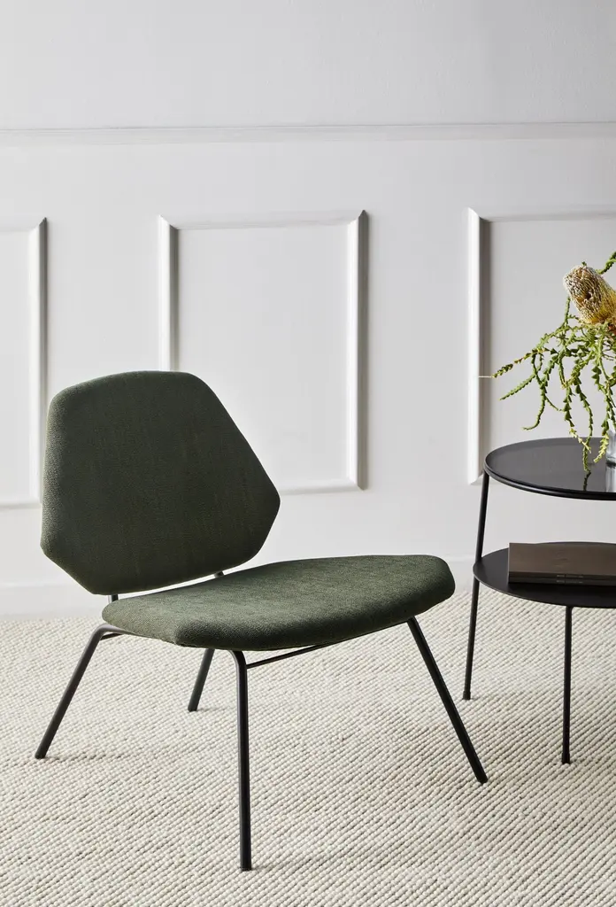 Lean dusty green lounge chair by Nur design.Materials: plywood, fibre and foam.Dimensions: D 66 x W 64 x H 72 cm.Also available in different colours. The founders, Mia and Torben Koed, decided to put their 30 years of experience into a new project. It was time for a change and a new challenge. The challenge was to build an ambitious design brand from the ground up with high-quality materials and great attention to the little details. With a drive to create new originals, the WOUD collection is founded upon the idea to look ahead instead of looking back and share the love for honest design. Therefore, we are eager to discover and develop new ideas whether it being in form, function or choice of material. NUR Design is a Danish design studio focusing on Nordic traditions with a strive to create classic and functional design. In German, the word ‘nur’ means ‘only’ and ‘simply’ which is the essential expression of the designs. The designer behind the studio, Maja Bøgh Vindbjerg, graduated from the school of architecture in Aarhus in 2015, which is visible in the sculptural and architectonic lines of her designs. With a minimalistic expression in mind, she aims to create timeless and long-lasting designs that are suitable for many different purposes. Her understanding of production methods and the challenges and opportunities various materials provide results in clean designs with great attention to detail. NUR Design was one of the first designers who teamed up with WOUD and she has been a great part of the designer collective ever since. With a wide product range consisting of Baenk bench, Gap pendants, Geyma sideboard, Lean lounge chair, Soround coffee tables and her most recent design, Auka flower stand, she has left her mark on the WOUD collection.