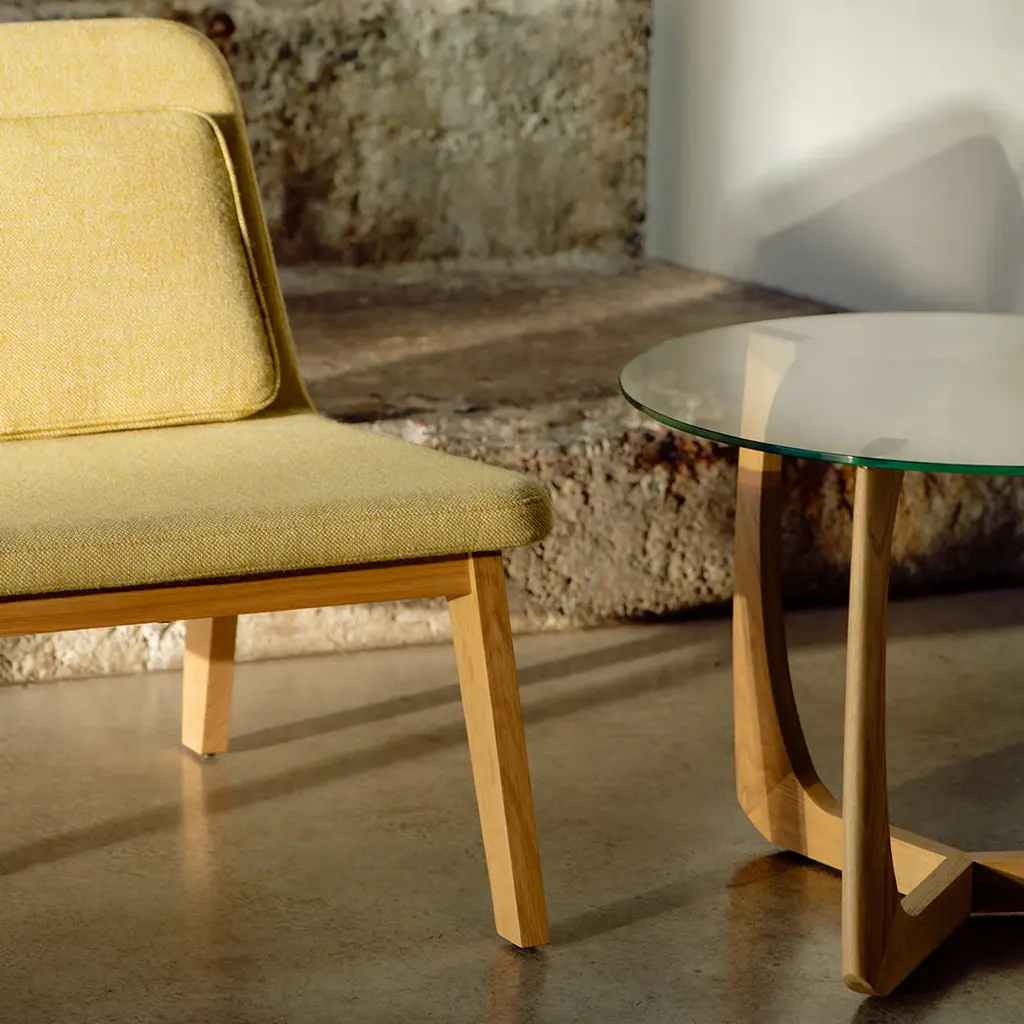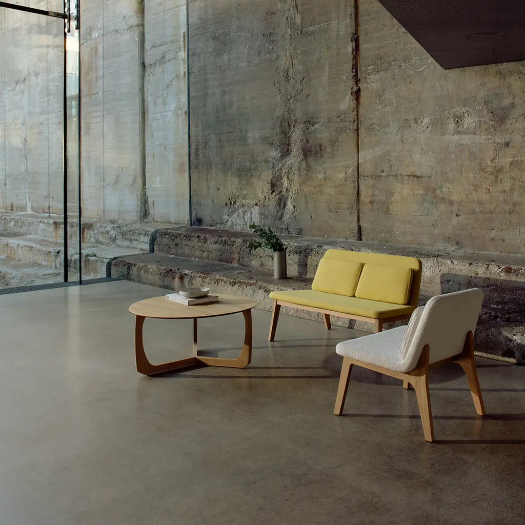 A modern design applied to traditional craftsmanship. An upholstered shell in a basic and minimalistic shape is leaning on an essential structure in solid oak stained or natural. The exclusive cushion is sophisticatedly tailored with a delicate stitched motive.