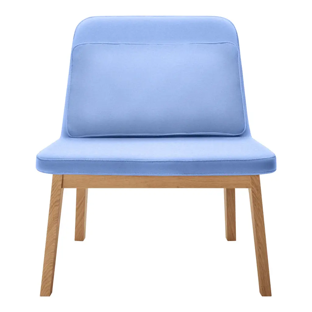 A modern design applied to traditional craftsmanship. An upholstered shell in a basic and minimalistic shape is leaning on an essential structure in solid oak stained or natural. The exclusive cushion is sophisticatedly tailored with a delicate stitched motive.