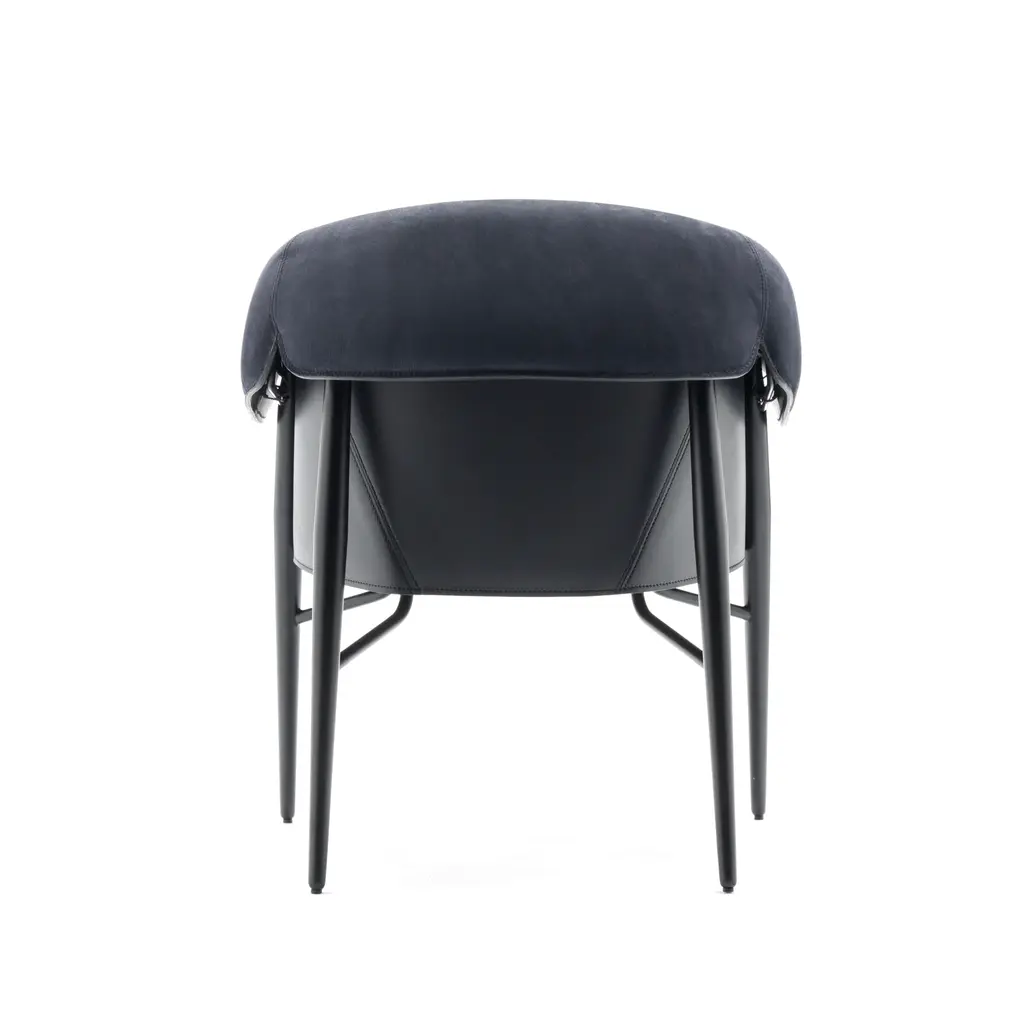 Montgomery is born from the quest for a seat that appears comfortable at first glance, almost devoid of structure. Here, the frame is rendered nearly invisible by a soft cloak that envelops it. Skilled artisan hands perform intricate techniques that combine full-grain leather and high-quality leather for this seat.